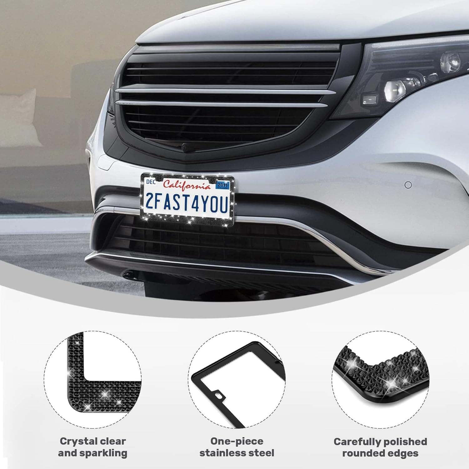 - 【Super Sparkly License Plate Frames】: Why go for boring plain license plate frames when you can go super fab with a car plate frame with actual rhinestones in it? Give your car a new cool look now! 2 Pack license plate frames for women are sure to make your car catch everyone’s eyes on the road