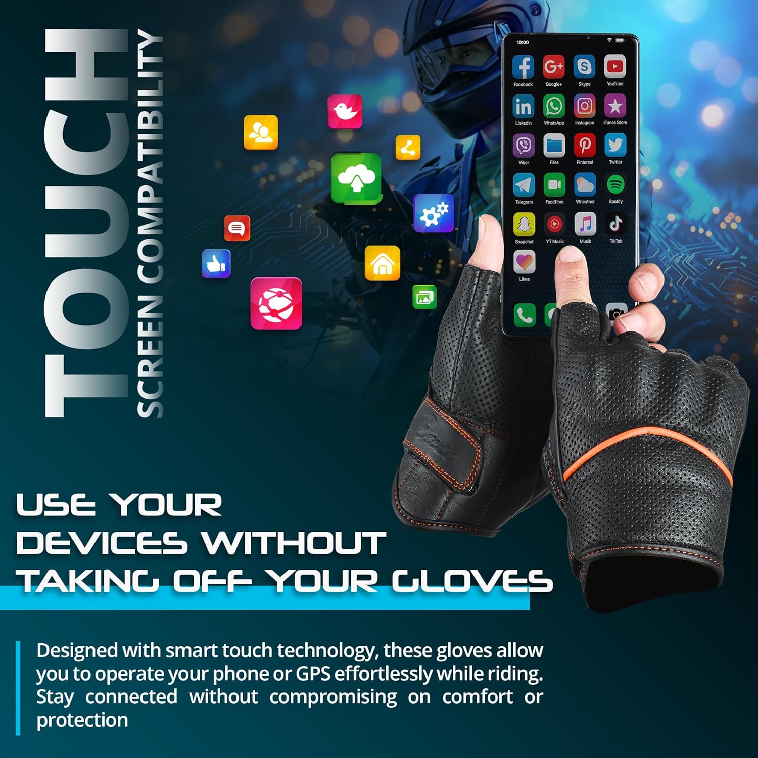 - TOUCHSCREEN MOTORCYCLE GLOVES - aaasportx Motorcycle Gloves for Men Touchscreen thumb and forefinger have touch screen capability. The gloves can be used with any number of touch screen devices without the user having to remove the glove. This makes them ideal for outdoor activities. Perfect choice for motorcycle riding, motorbike racing, scooter, driving, snowmobile, off-road, ATV, MTB, Powersports activities.