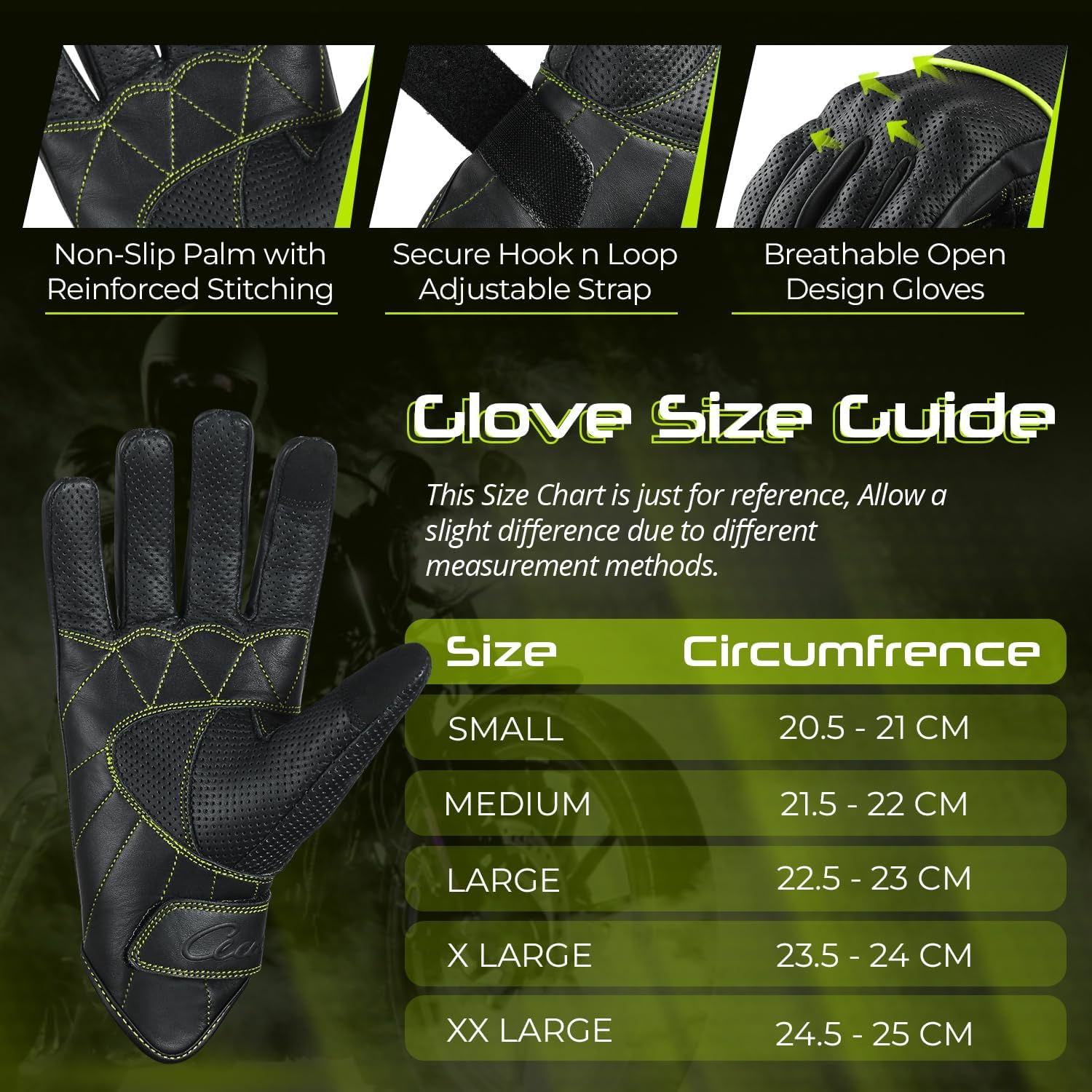 - CHOOSE THE RIGHT SIZE - Our Men's Motorcycle Gloves Offers Five sizes, the Motorbike Gloves offer the perfect fit for men and women. Check our size chart and find the right size for your hands