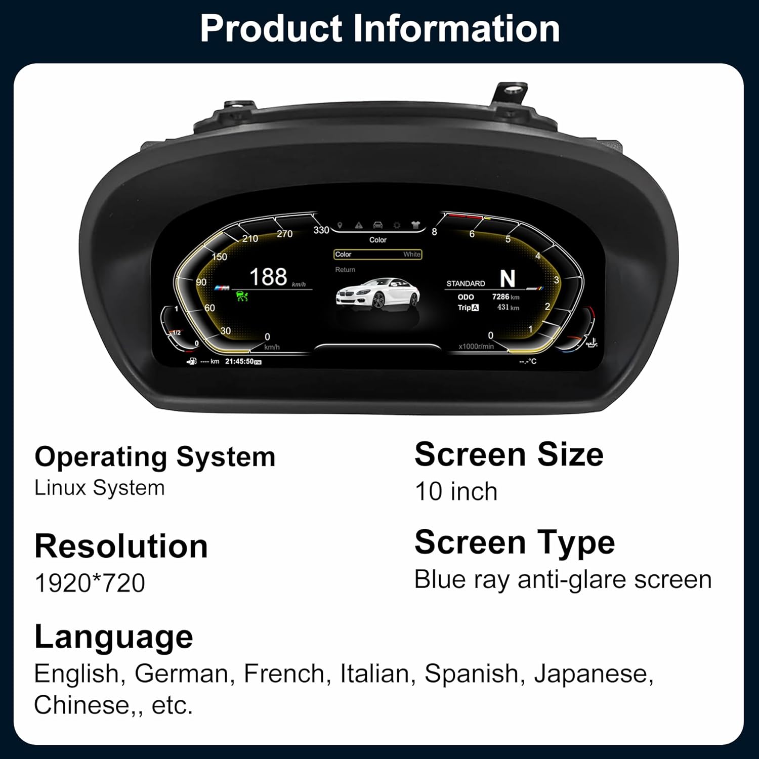 - š[Applicable Models] The LCD digital instrument cluster is precisely customized for BMW E87 (2006-2011) CCC CIC system. It is equipped with a 10 inch high-definition screen boasting a resolution of 1920*720. Supports all original features