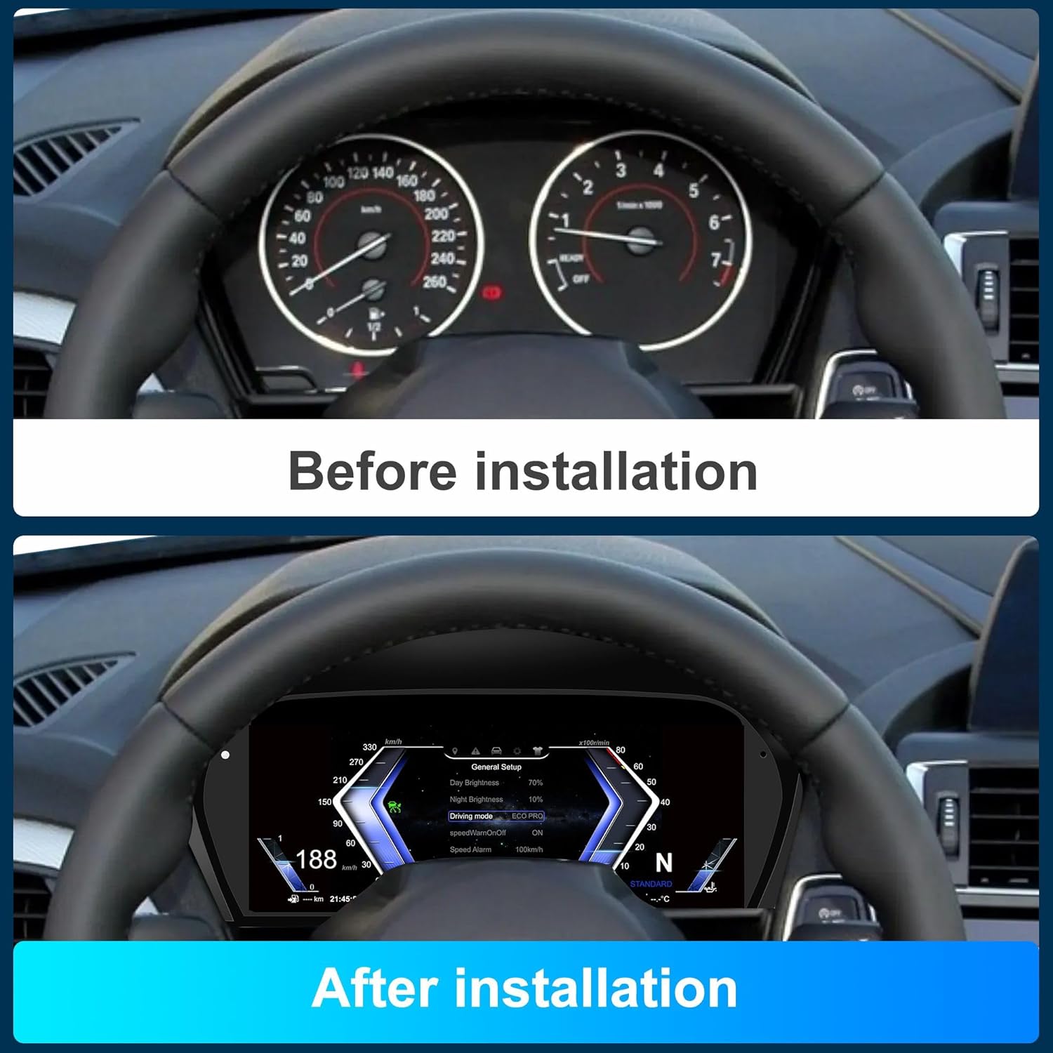 - āļø[Technical Support] Install only 2 cable connections required. Upgrade software for this digital dash/speedometer is available
