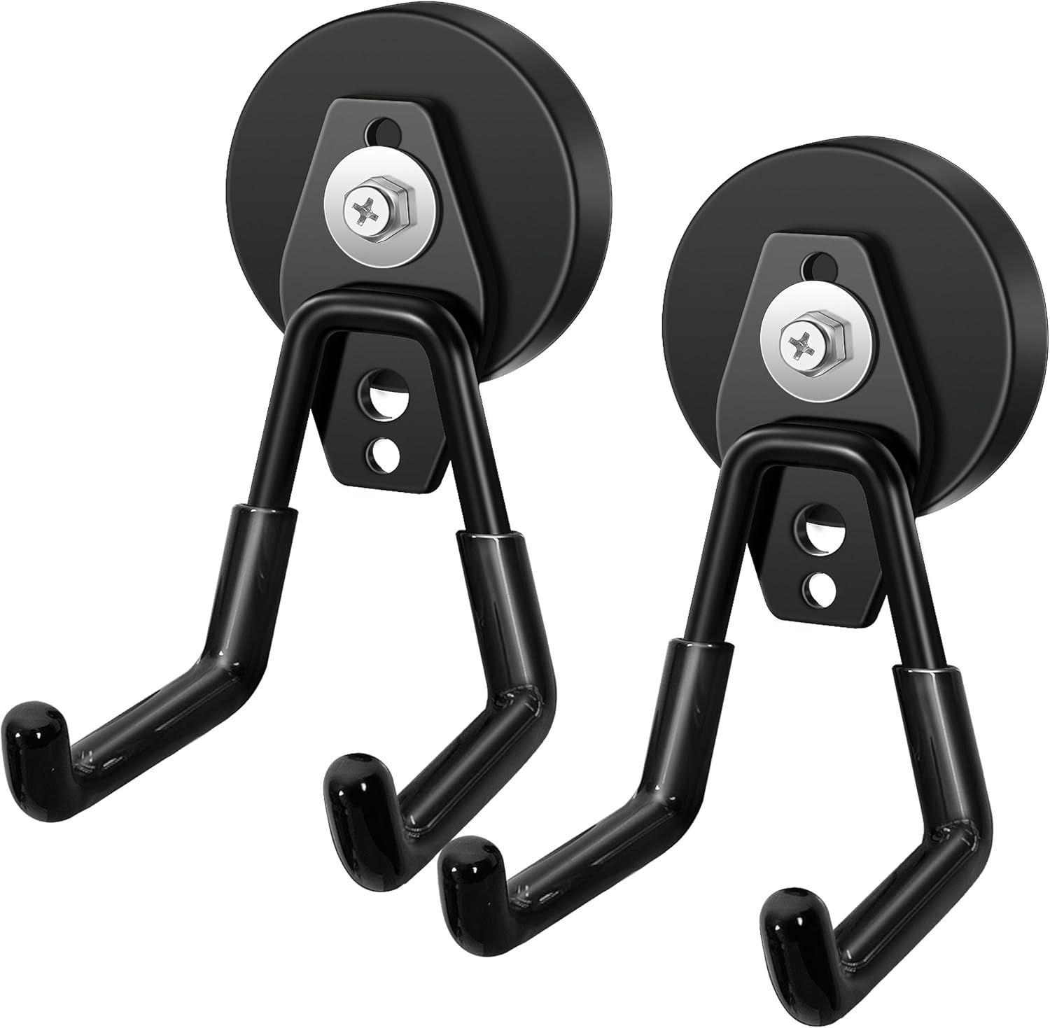 2 Pcs Storage Utility Magnets Hanging Hook with Anti-Slip Coating,Heavy Duty Strong Magnetic Garage Hooks, Magnetic Wreath Hanger for Metal Door Cabinet Pegboard Shelve Garden Tools(Black)