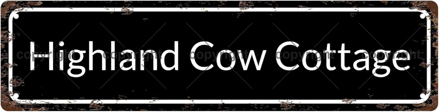 Highland Cow Cottage Vintage Metal Tin Sign, Street Sign, Home Decor, Room Decor, Wall Decor, Bathroom Decor, Bar Decor, Cafe Decor, Garage Decor, 16 x 4 Inch