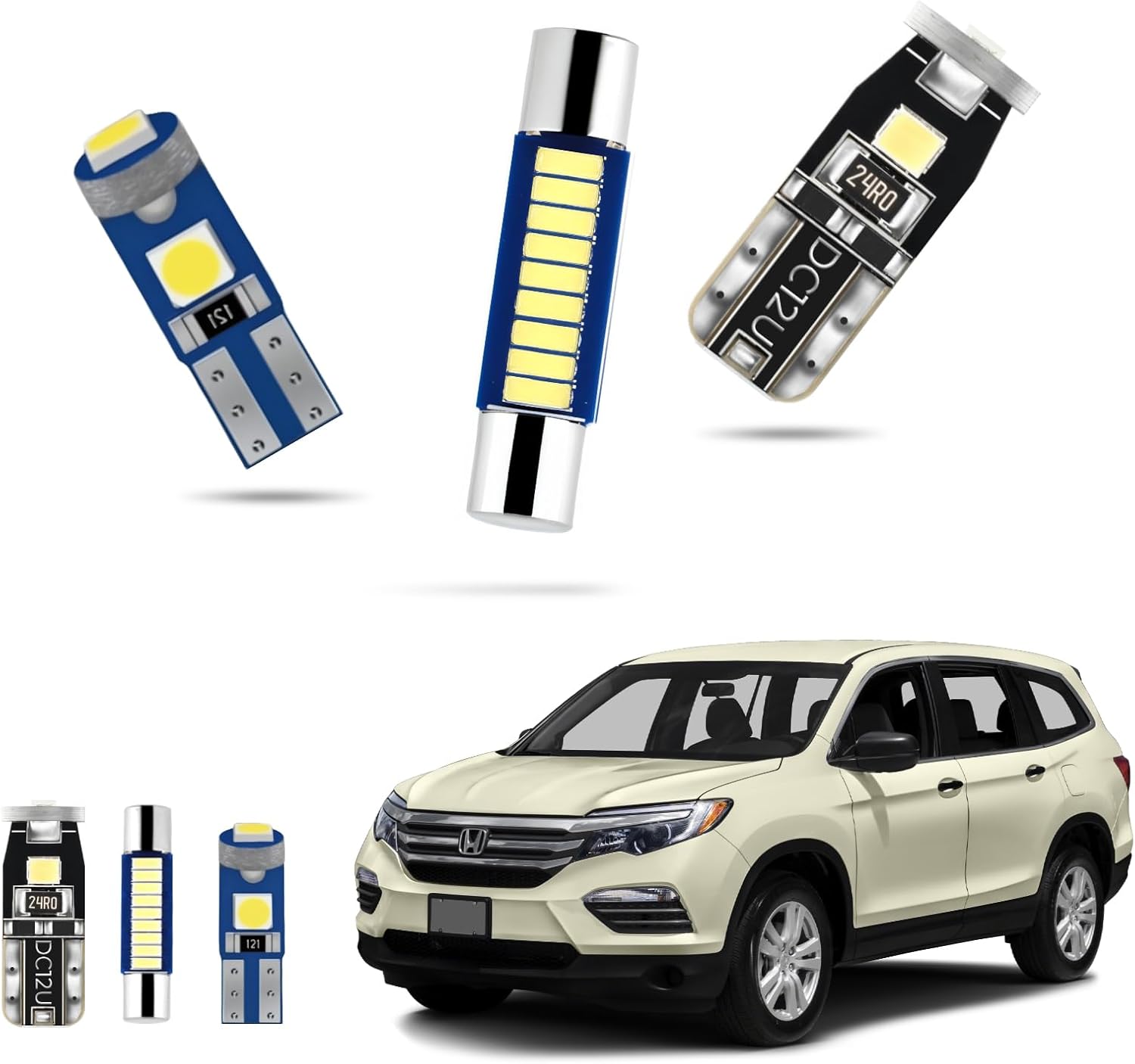 - Super Bright 6000K White LED Bulbs: Illuminate your Honda Pilot with high-performance 6000K white LED Interior Car Lights that offer superior brightness, ensuring your cabin is brightly lit without straining your eyes. These lights provide a cool white color temperature that mimics daylight, offering a crisp, clean look. Perfect for reading, searching for items, or simply enhancing the interior aesthetics of your Pilot. Reliable, long-lasting, and designed to outshine conventional bulbs.