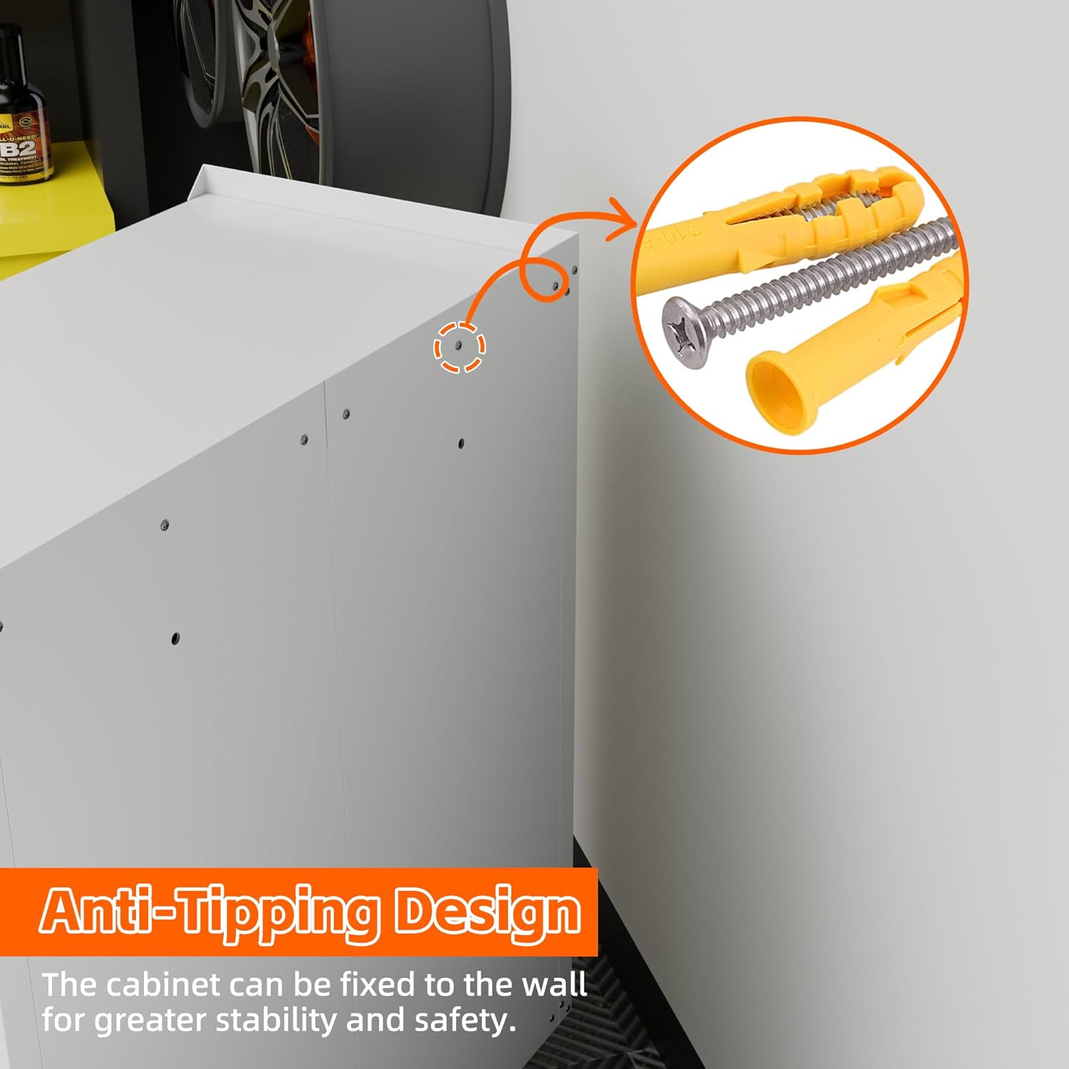 - Secure Privacy Lockable System: This garage storage cabinet has lockable doors with 2 keys, which will keep all your belongings secured in the cabinets. Benefit from a second key, which can be used by co-owners or as a backup in case of loss;