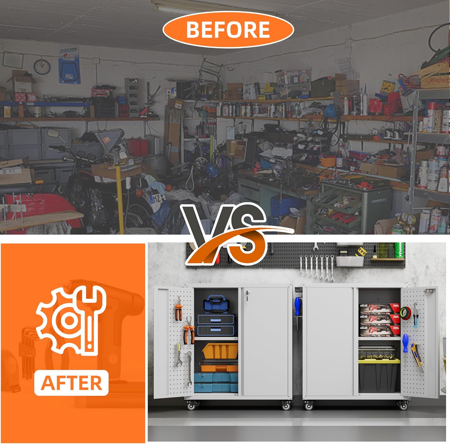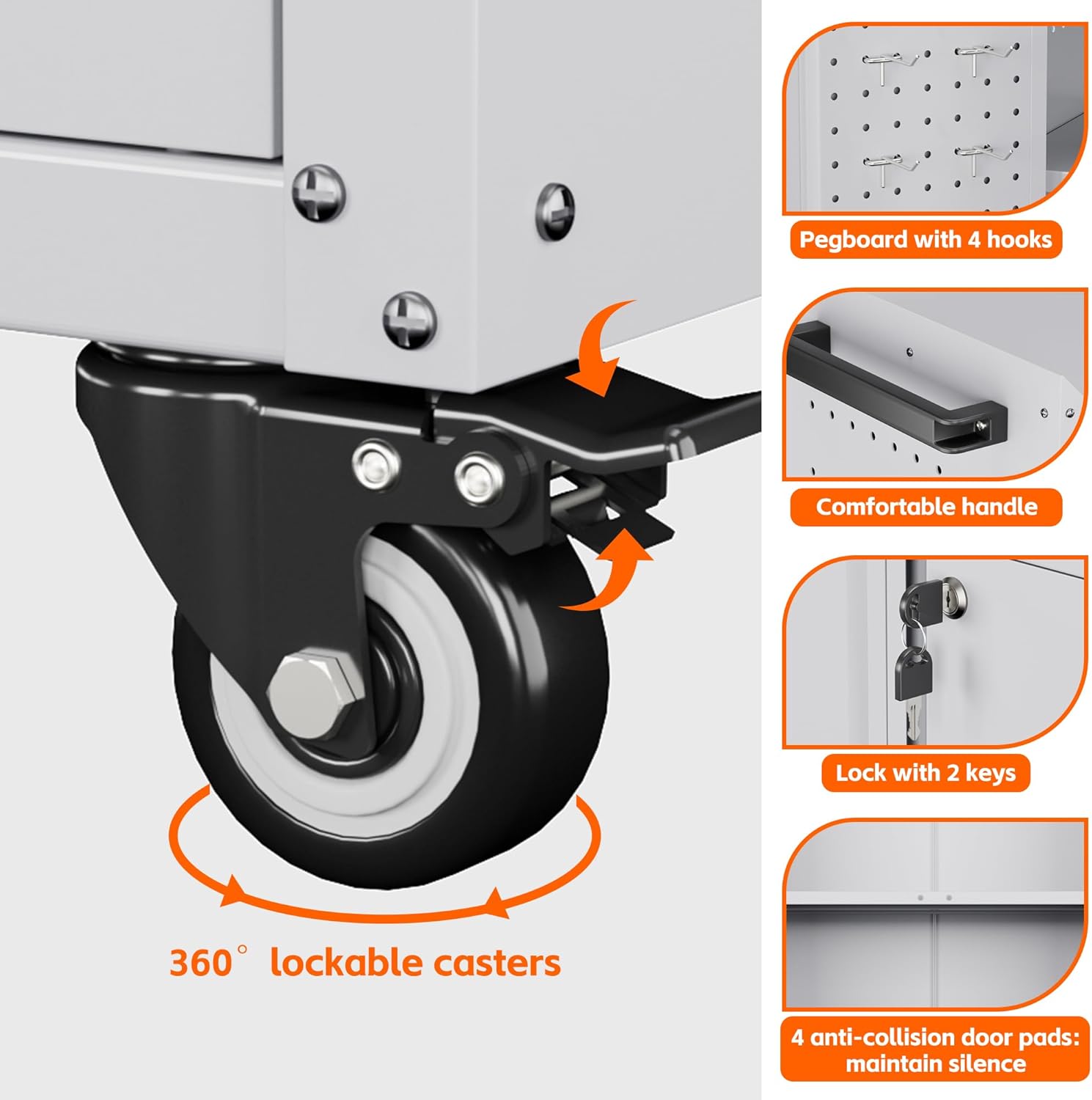 - Heavy Duty Metal Frame & Environmental Coating: Our garage storage cabinet with wheels are made of heavy gauge cold-rolled steel plate, load capacity up to 120lbs each shelf and strong. Environmental powder coating means excellent rust and water resistance;