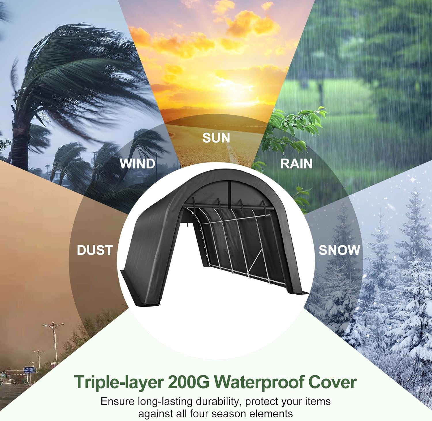 - Secure Grounding for Peace of Mind: Stay protected, even in severe storms. Our carport includes 16 heavy-duty steel anchor kits for secure ground fixation, plus ropes to further secure the cover to the frame. This ensures your carport remains steadfast, even in high winds and heavy snow