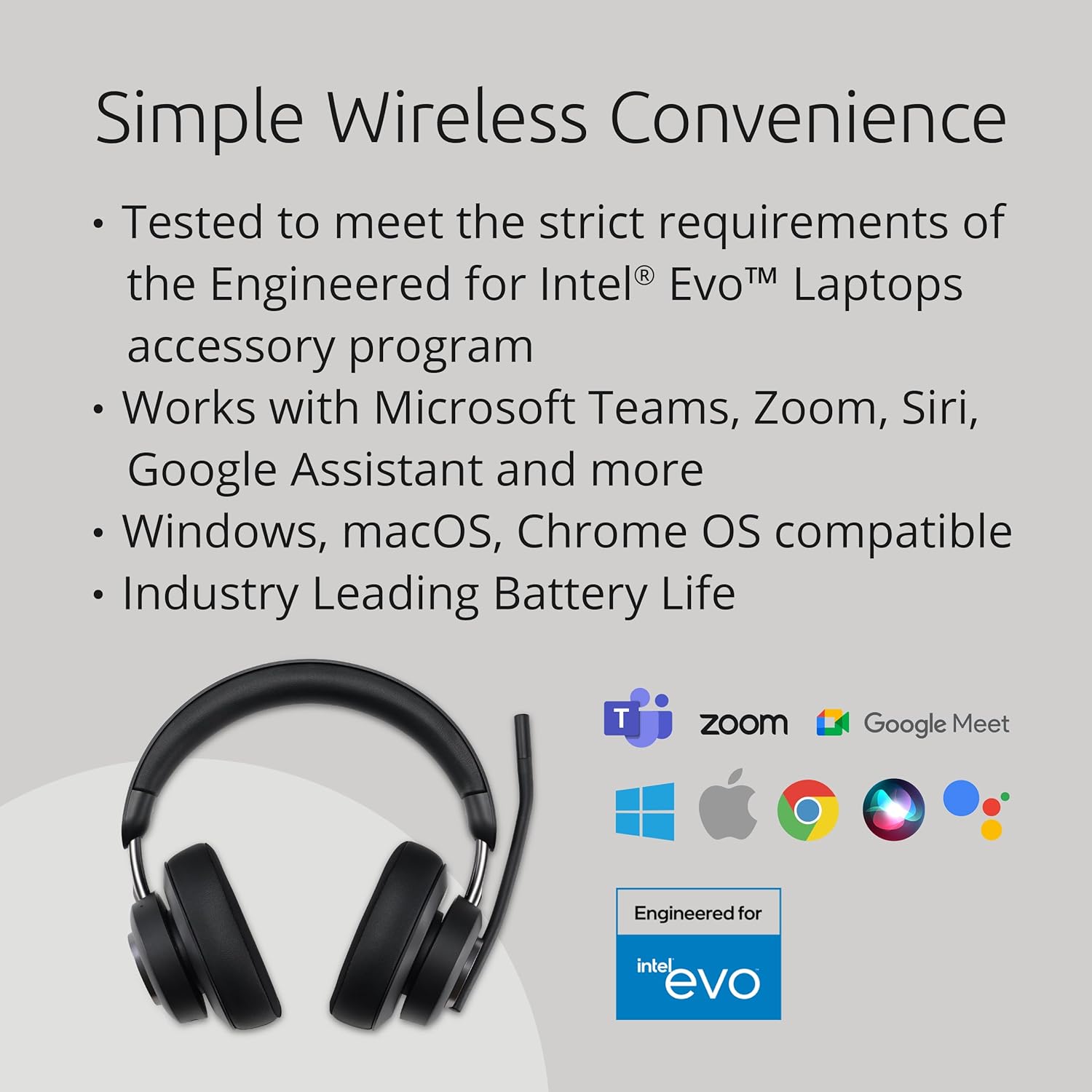 - Universal Device Compatibility - Works with popular calling applications (Microsoft Teams, Zoom, and more), operating systems (Windows, macOS, and Chrome OS), mobile devices (iOS and Android), and voice assistants (Siri and Google Assistant).