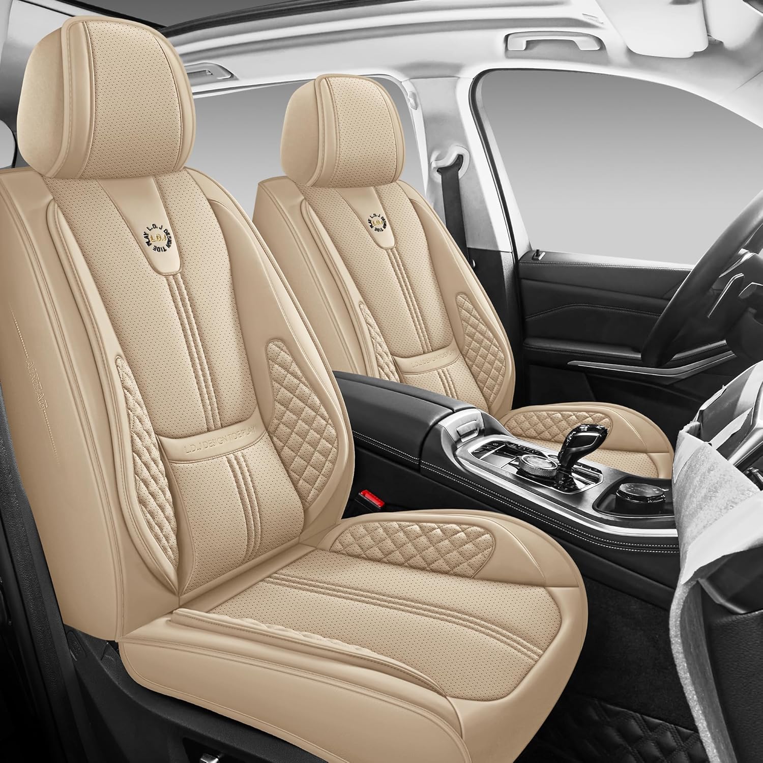 Car Seat Covers Front Only, Black Seat Cover for Cars Compatible Airbag, Easy Install Luxury Leather Automotive Seat Covers with Lumbar Support, for Car, Truck, SUV, Beige