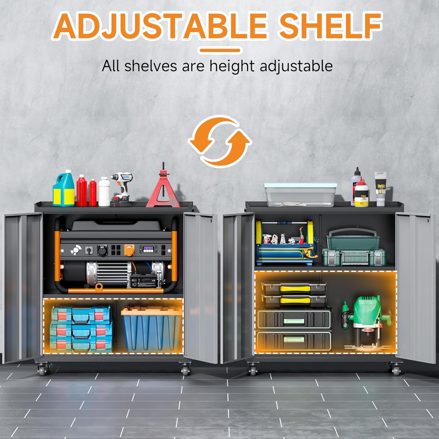 - 🛠️【Ample Storage Space with Customizable Layout】Offering more storage than traditional cabinets, this garage storage cabinet features adjustable and removable shelves, tailored to your specific needs.