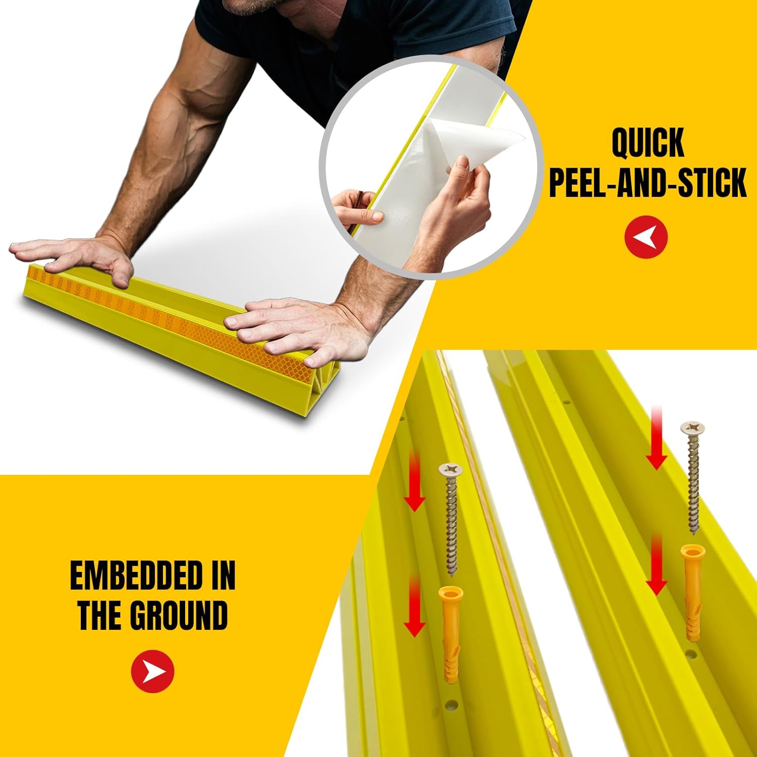 - 2 Mounting Options: The parking block can be installed in a peel-and-stick style or fixed by using the included screws into the pre-drilled holes. It effectively guides vehicle parking within your designated spaces for both temporary and long-term use