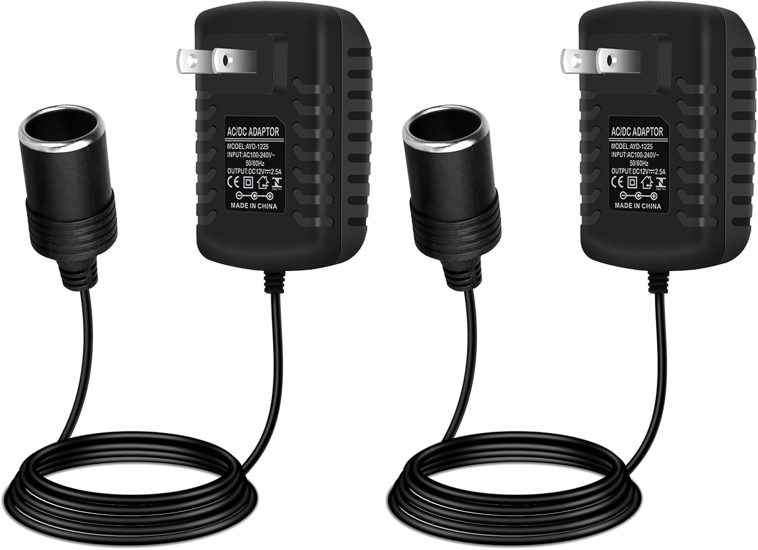 inShareplus 12V 2.5A 30W AC to DC Converter, 12 Volt Car Cigarette Lighter Adapter to Wall Outlet, 110V to 12V Power Supply for Car Devices (MP3, Fan, Dash Cam), 2 Pack