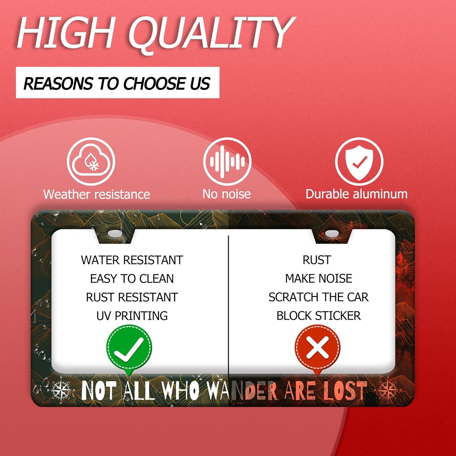 - 【Excellent Printing Concept】Use Advanced Digital Printing Protects License Plate Frames ,Whether It'S A Car Wash, Heavy Rain Or Hot Weather, It Still Looks Brand New,Let Your Car Still Be Unique And Stylish While Driving On The Road.