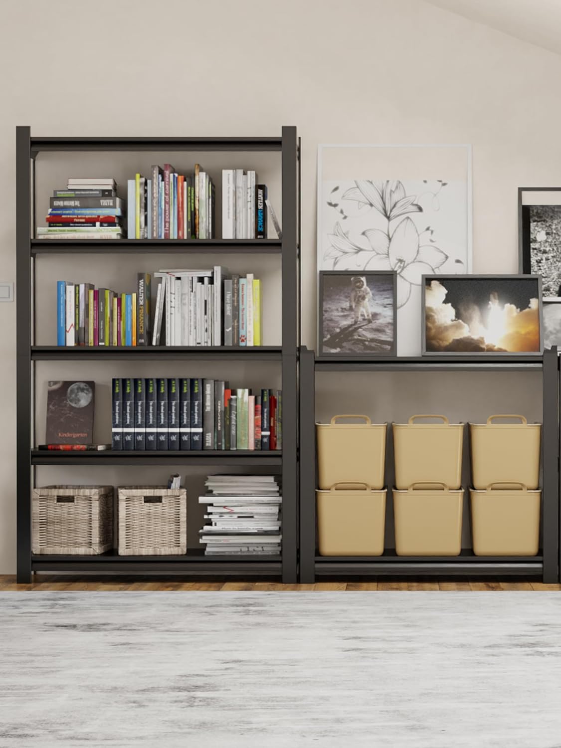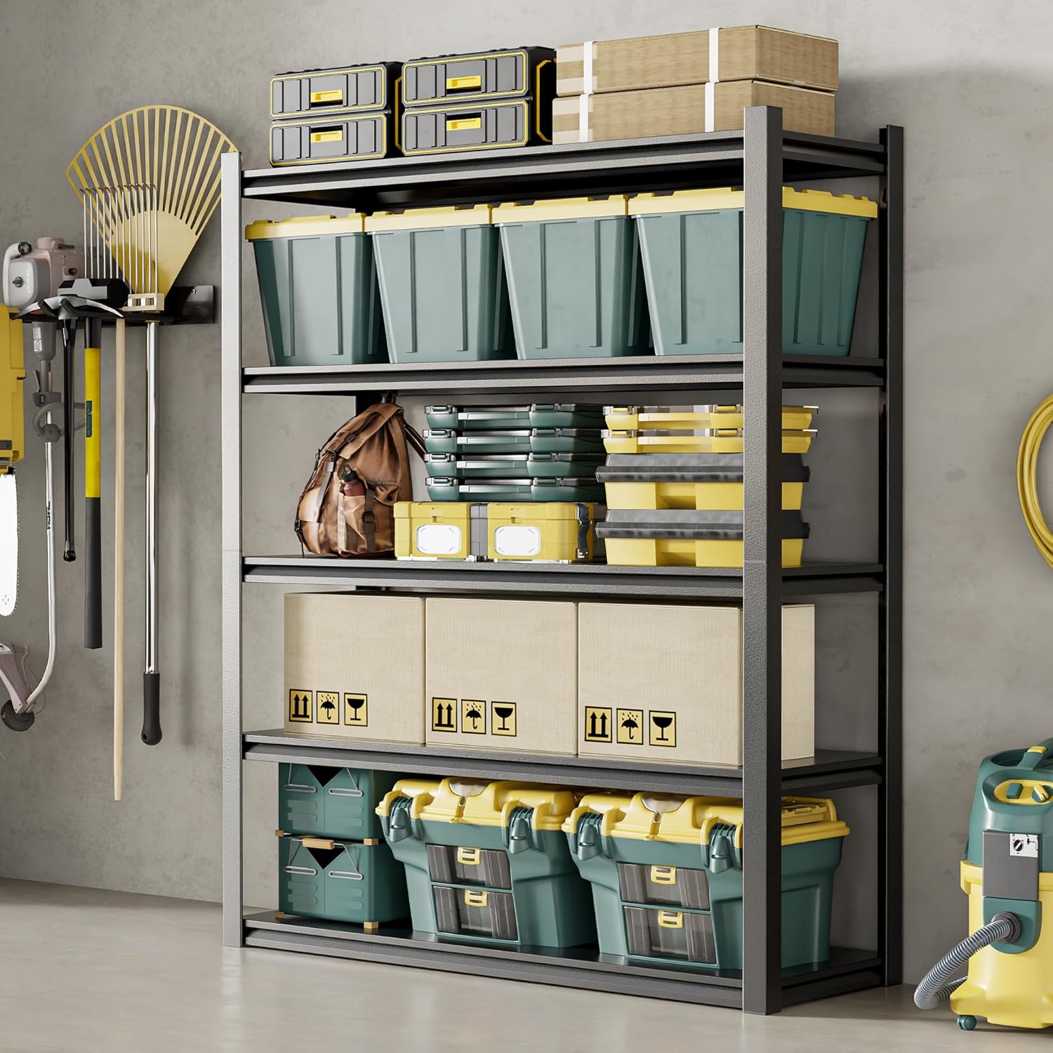- [Heavy-Duty Steel Shelving for Maximum Durability]Built with industrial-grade steel,these 5-tier metal shelves support up to 500 lbs per shelf, ideal for garage storage,workshop tools,or pantry organization.Resists bending or warping for long-lasting use