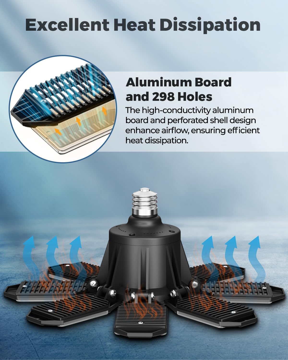- Advanced Heat Dissipation: Crafted with a premium aluminum board and an open-back design, our garage light efficiently disperses heat to extend its lifespan. You can say goodbye to flickering or dimming caused by overheating—these carefully engineered elements keep your ceiling lighting fixture running smoothly and reliably. It’s a smart investment that stands up to heavy daily use, letting you tackle projects without interruption.