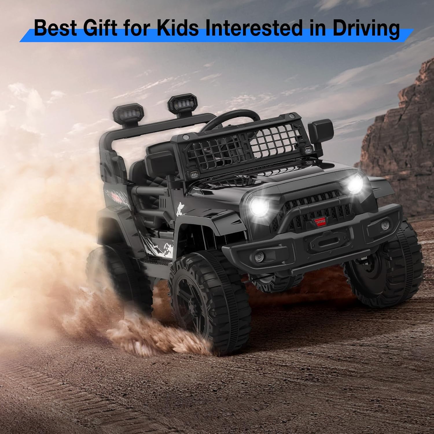 12V Kids Electric Ride On Truck Car w/Parent Remote Control, Spring Suspension, LED Lights & AUX Port | Outdoor Ride Toy for Boys Girls