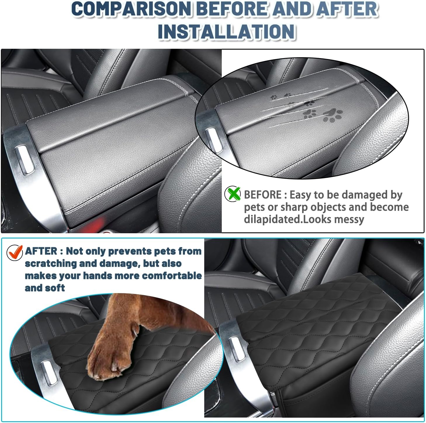 - ►QUALITY ASSURANCE - Our all armrest cover cushion undergo a strict quality test,make sure car interior protection accessories armrest seat box cover have better quality. If you have any quality problems and questions about the products, you can contact us at any time, and we will reply to you within 24 hours.