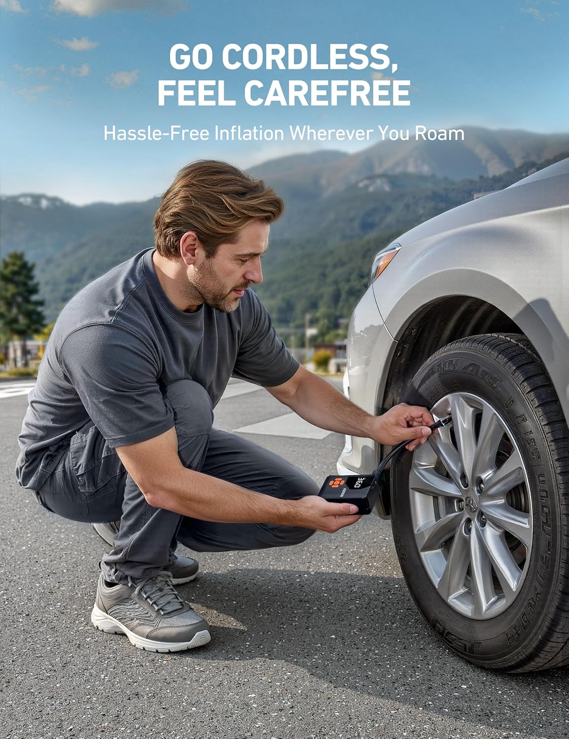 - LONG DURATION: Once the L7 Mini Tire Inflator is fully charged, it can easily handle multiple inflation needs, efficiently inflating up to 8 car tires/18 motorcycle tires/ 30 bicycle tires/88 basketballs. Backed by a high-capacity battery pack, the L7 Mini is a reliable & long-lasting partner for camping, long trips, daily use, and beyond.