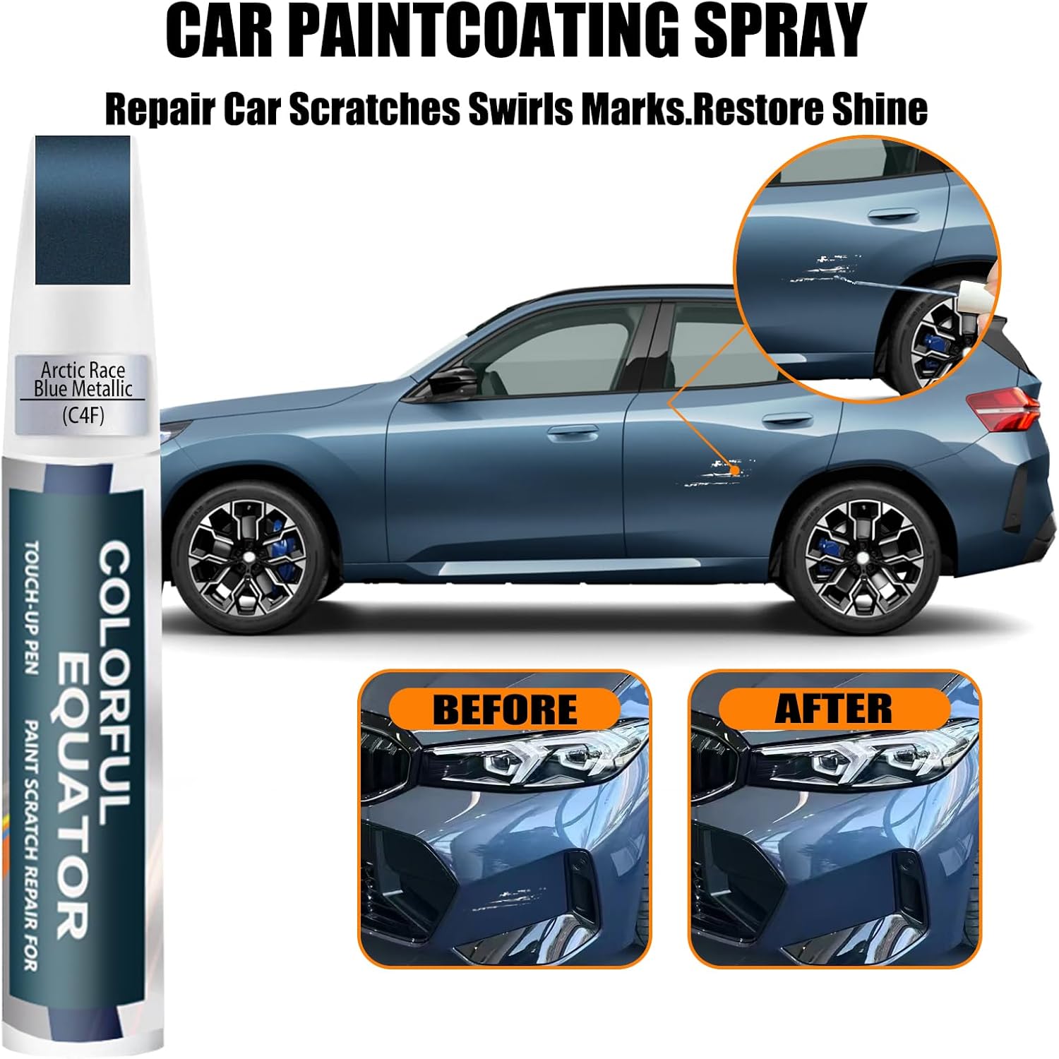 Arctic Race Blue Metallic(C4F) Touch Up Paint for BMW, Car Paint Pen Scratch Repair Two-In-One Touch Up Paint, Premium Car Scratch Remover for Deep Scratches