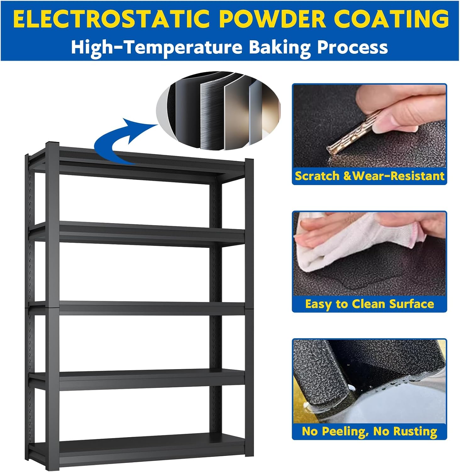 - 【Rust-Resistant, Scratch-Proof & Built to Last】Coated with a high-temperature electrostatic powder finish, the surface is highly resistant to rust, scratches, and everyday wear and tear. This protective layer enhances durability, ensuring your garage storage shelves heavy duty remains in top condition even in humid or demanding environments.