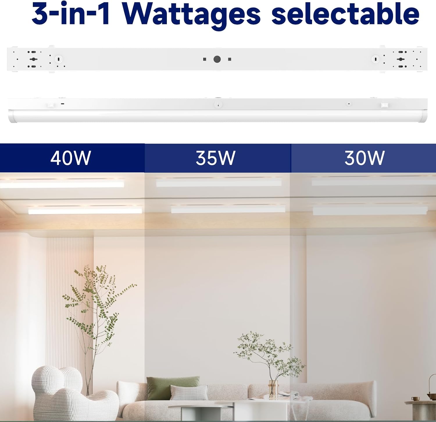 - 【Adjustable Wattages & 4 CCT】Customize your lighting with 30W/35W/40W power modes and 3500K/4000K/5000K/6500K color temperatures. Switch between warm ambiance and crisp task lighting instantly—no extra fixtures needed.