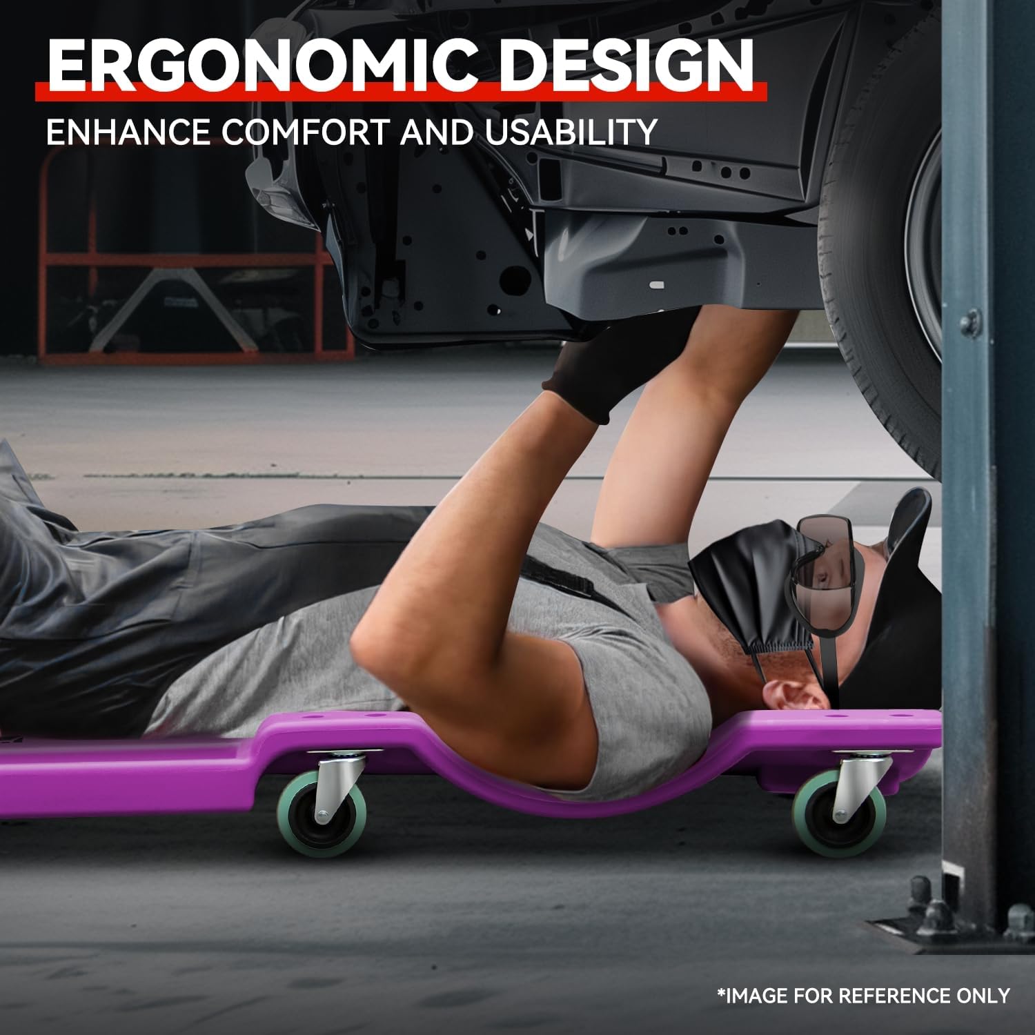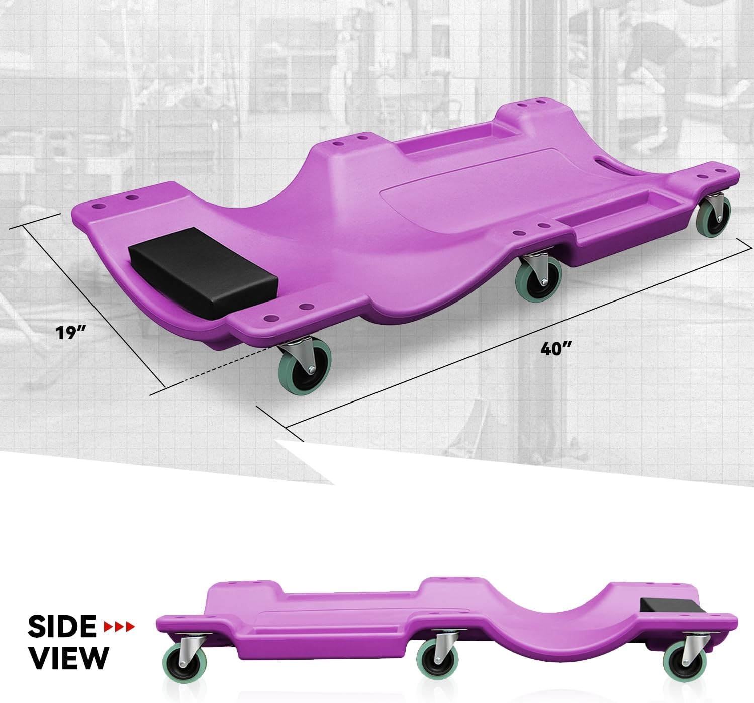 Auto Dynasty 40 Inches Mechanic Creeper, Automotive Garage Repair Low Profile Under Car Rolling Creeper with Padded Headrest, Plastic, Purple
