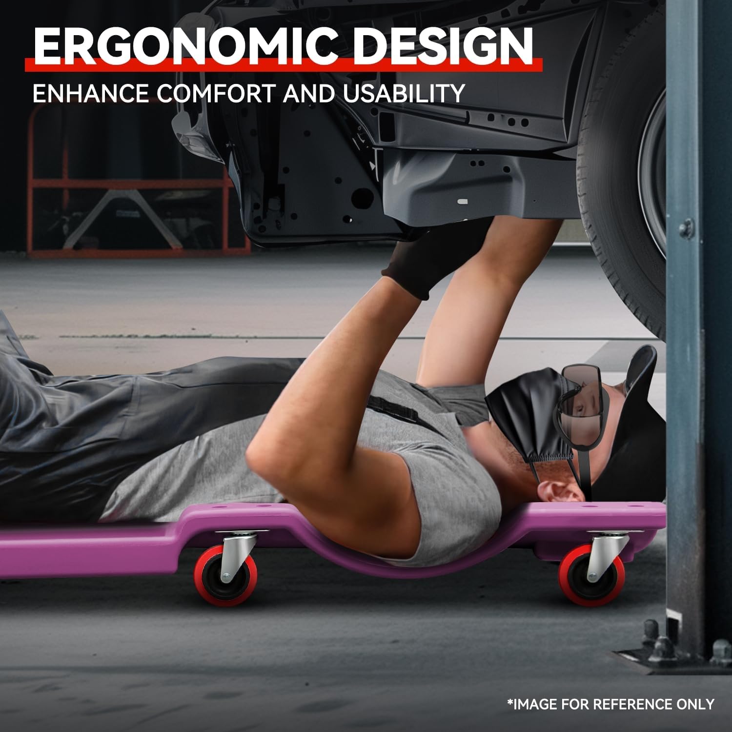 Auto Dynasty 36 Inches Mechanic Creeper, Automotive Garage Repair Low Profile Under Car Rolling Creeper with Padded Headrest, Plastic, Purple