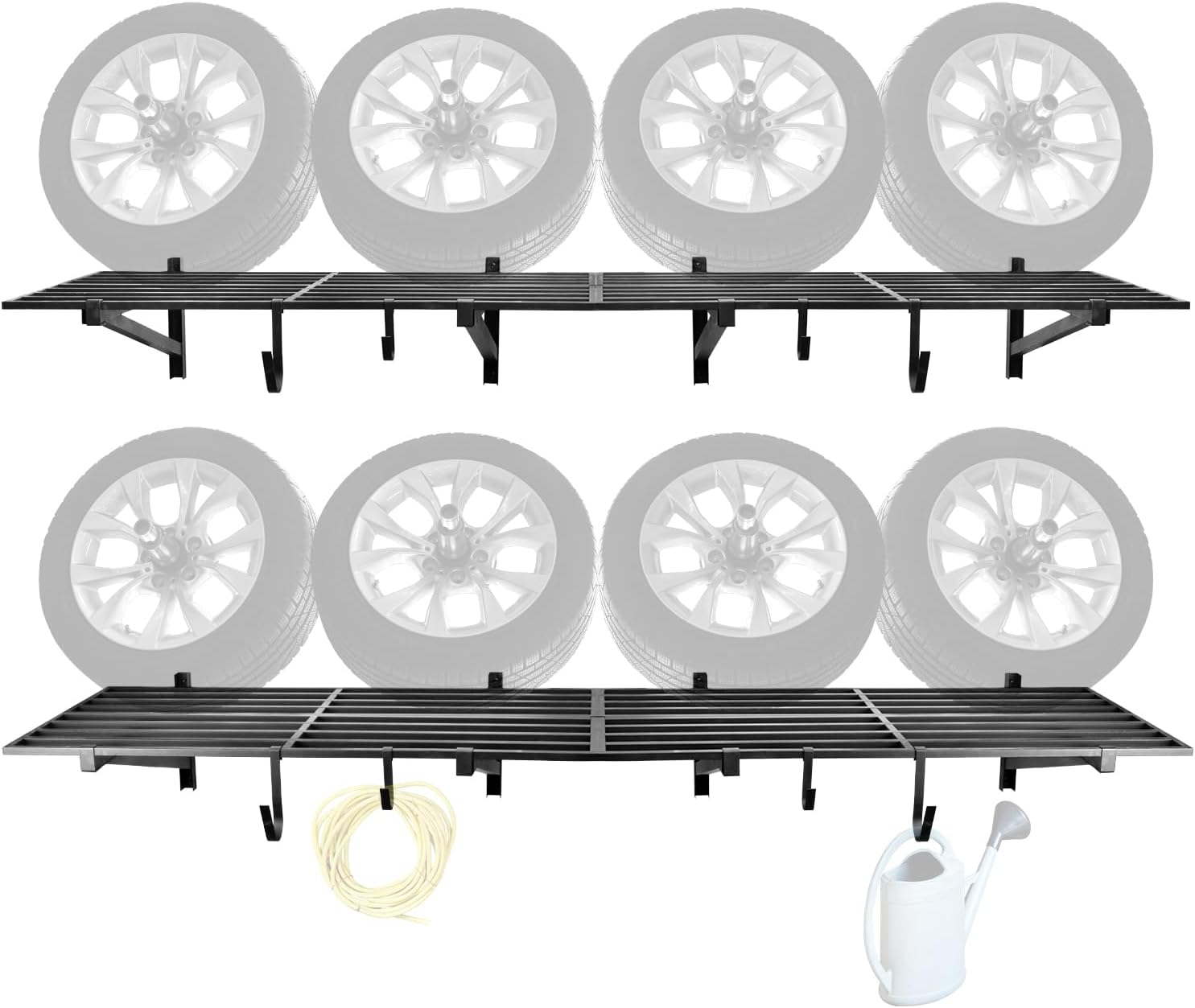 - SAVE SPACE IN THE HOME LOGISTICS: The wall mount rack can help your garage floor clean and tidy, make your garage less crowded, this garage wall shelf also comes with multiple metal hooks, can help you save a lot of space in the garage.