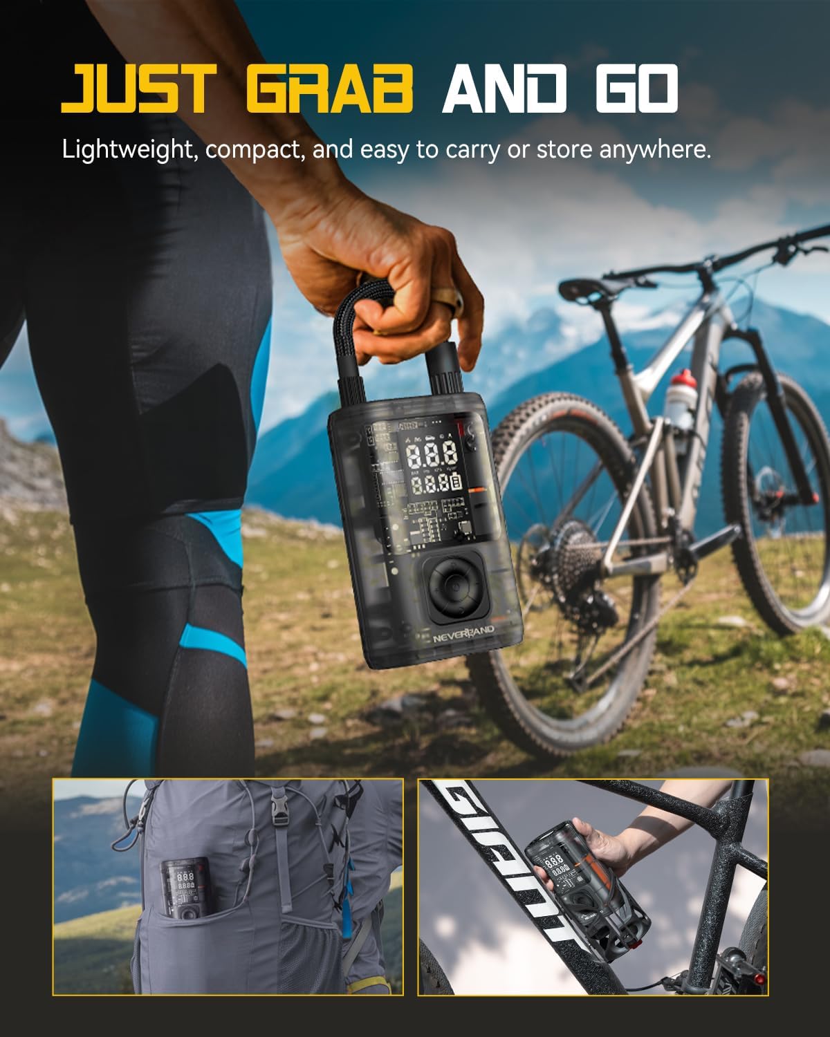 - ăPerfect Gift & Must-Have Car Accessoriesă The NEVERLAND portable tire inflator for car and bike is a smart, useful present for birthdays, holidays, or road trip season. Ideal as car accessories for men or women, this electric bike pump offers safety, power, and peace of mind. It's an essential companion on the road for cyclists and drivers alike