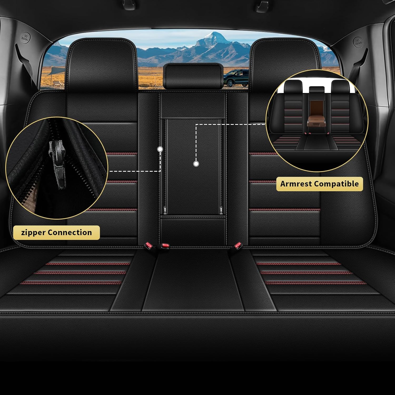 - 【Design Excellence】Rear seat covers 1:1 collection of original vehicle data, tight and non displaced, without affecting the use of safety buckles, the armrest cushion connection between the backrest is zippered, making it easy to disassemble and assemble. It is retractable, When it unfold,can provide elbow space for rear passengers. if you fold it up, the back seat can provide spacious space for your family and pets.