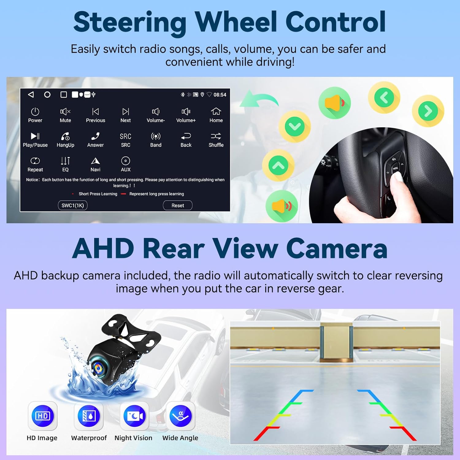 - 【Backup Camera & Steering Wheel Control】Wireless carplay radio for Subaru Forester WRX Impreza 2015-2018 with backup camera, automatically switch to clear reversing image on the car radio, parking be safer. Wide viewing angle of 170 degree, night vision and waterproof AHD backup camera. The Subaru Forester 2016 car radio doesn’t have a steering wheel control, but you can set the steering wheel control function on it, then switch radio function conveniently.