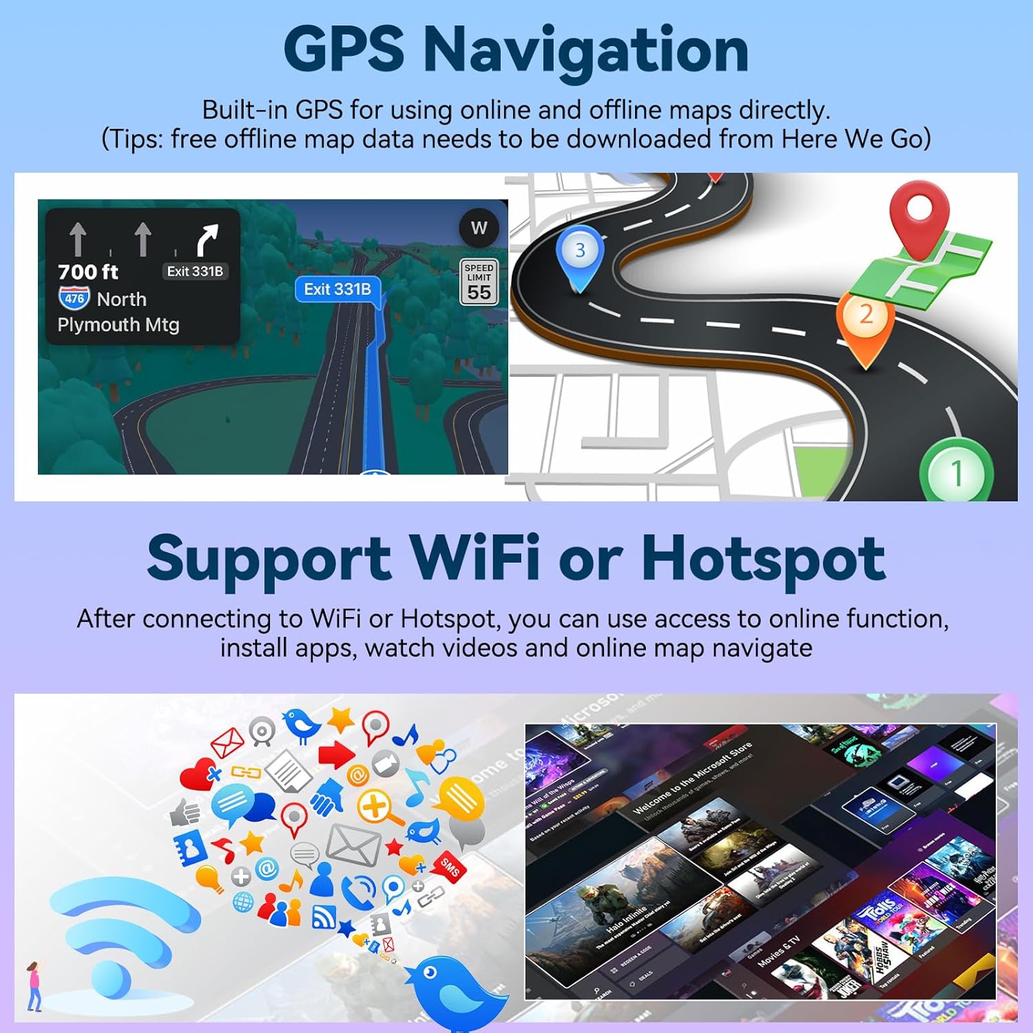 - Special Feature : Backup Camera Input, Bluetooth, Touchscreen, WiFi & GPS, Wireless CarPlay and Android Auto, Mirror Link Backup Camera Input, Bluetooth, Touchscreen, WiFi & GPS, Wireless CarPlay and Android Auto, Mirror Link