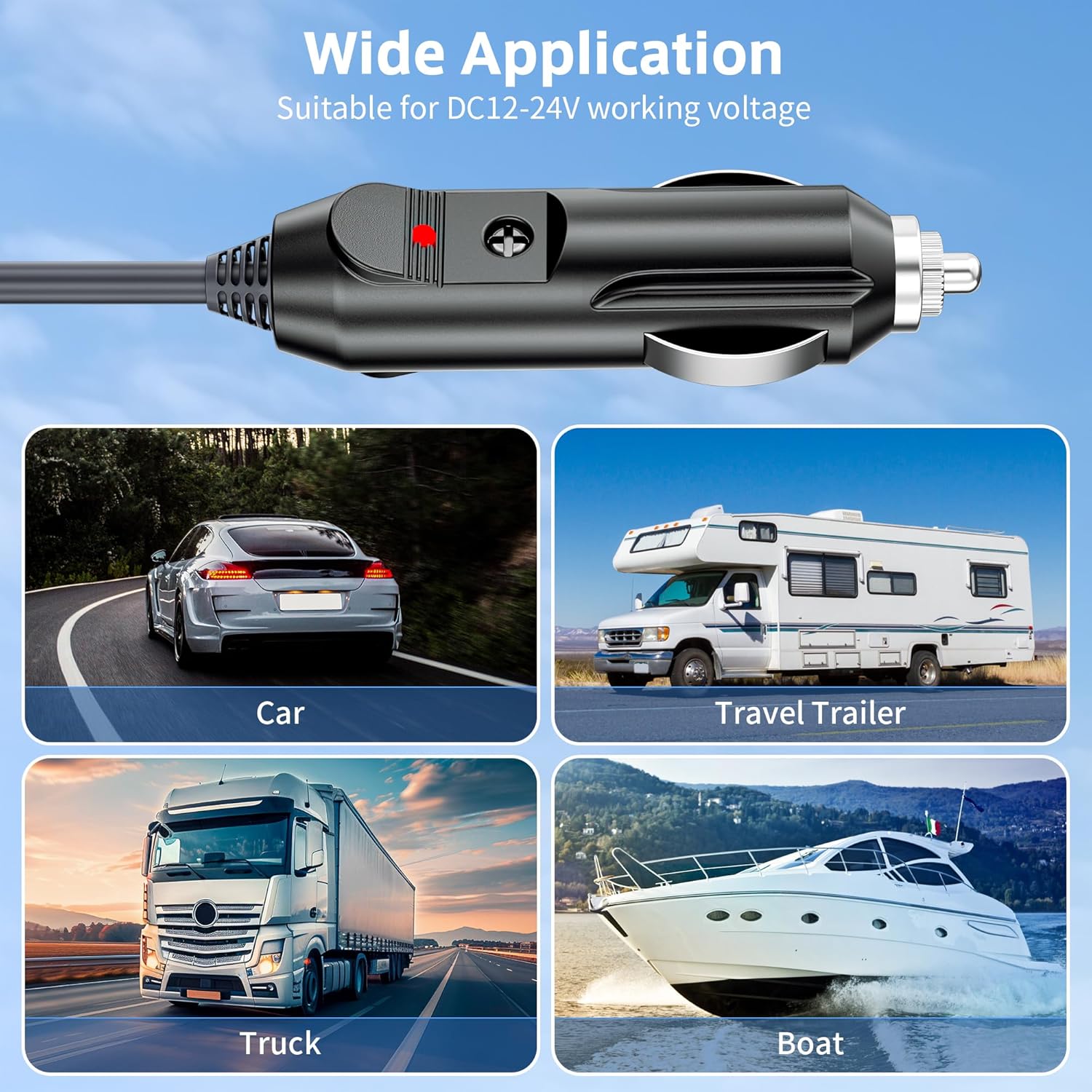 - Widely Compatible: Supports 12V-24V input,suitable for cigarette lighters sockets in cars, trucks, buses, vans, ships, etc, meet the different needs of users on the go