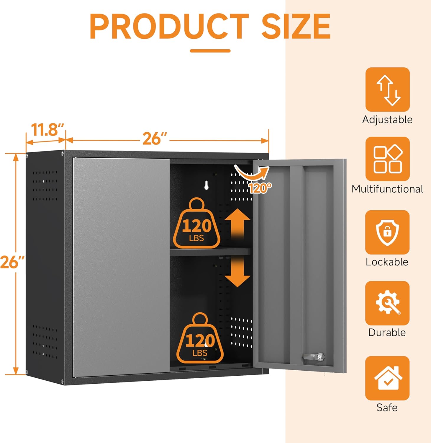 - 💎【Durable Metal Steel Construction】Crafted from high-quality metal steel, this wall cabinet offers exceptional strength and durability, making it a reliable storage solution for both industrial workshops and home garages.