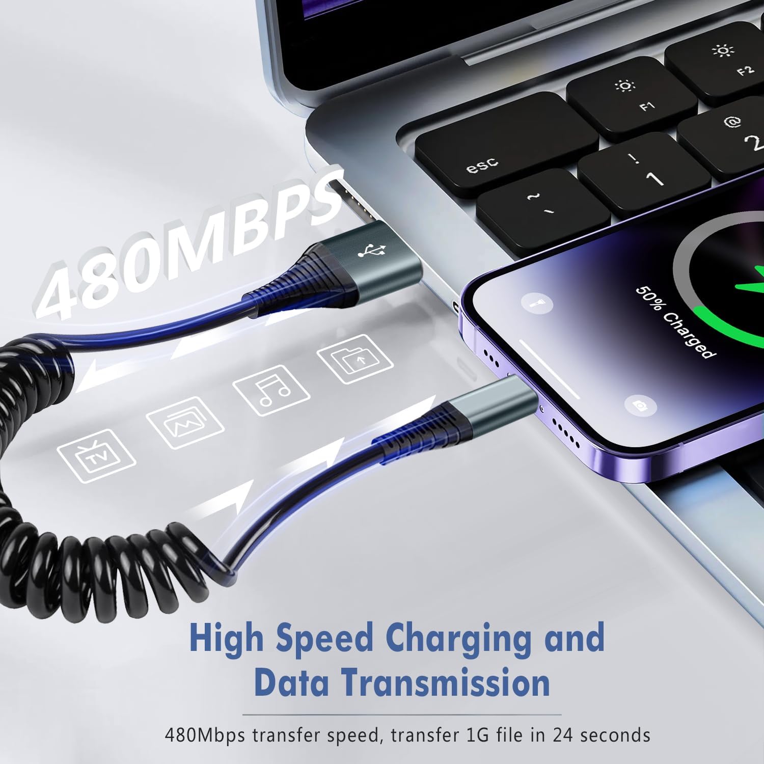 - 【2.4A Fast Charging & MFi Certified】:This iPhone charging cord features an Apple MFi Certified chip and complies with all Apple standards.It supports 2.4A fast charging and high-speed data transfer (up to 480Mbps),while safeguarding against overheating and overcharging to prolong your device's battery life.