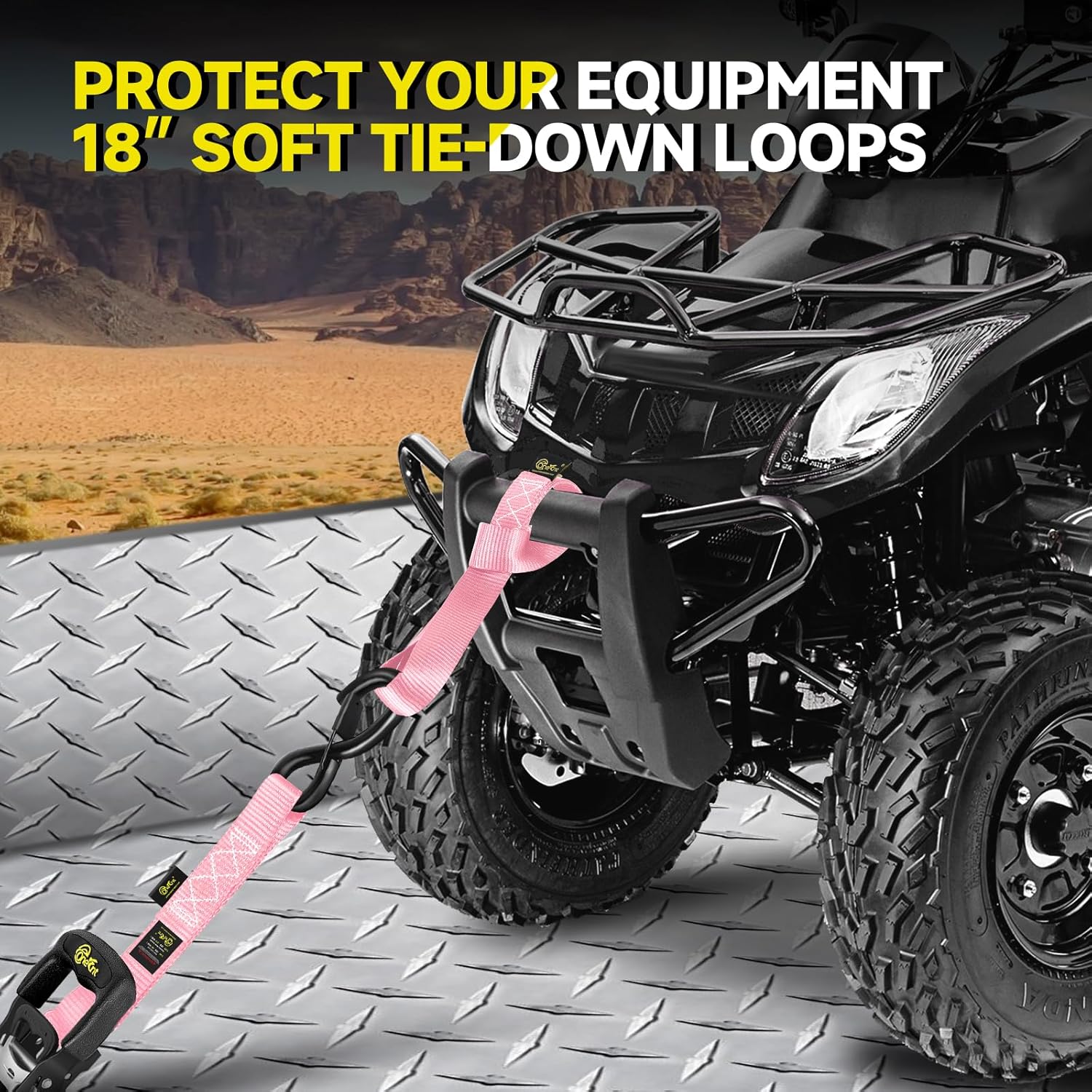 - Versatile Applications : Our tie-down straps are perfect for securing motorcycles, ATVs, UTVs, boats, kayaks, paddle boards, large appliances, and luggage for any transportation need. Whether you’re on the road or at home, these straps are your go-to solution!