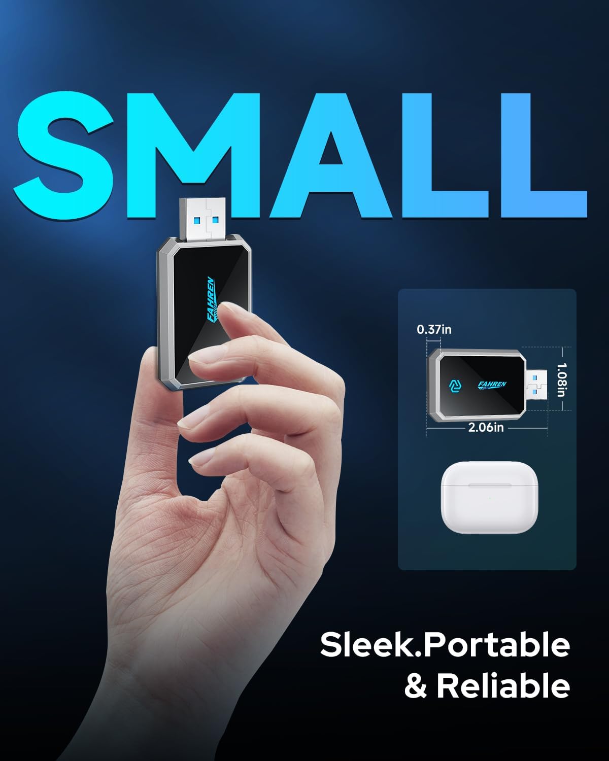 FAHREN Mini Wireless CarPlay Adapter,Bluetooth & WiFi Connection,Plug-N-Play,No Lag for Navigation,Compatible with iOS 10+ & Car 2016+,USB-A Extension Cable & Type-C Adapter.