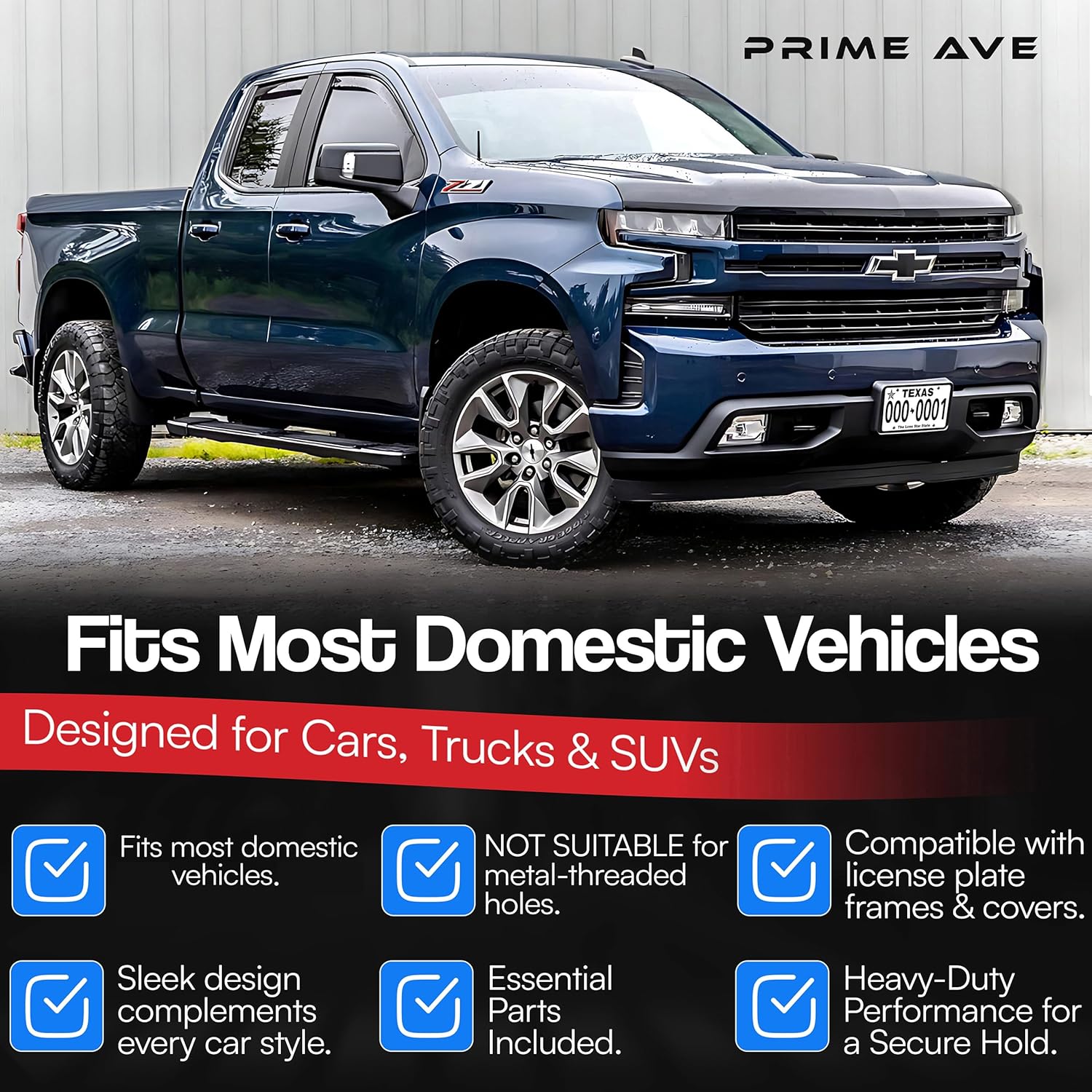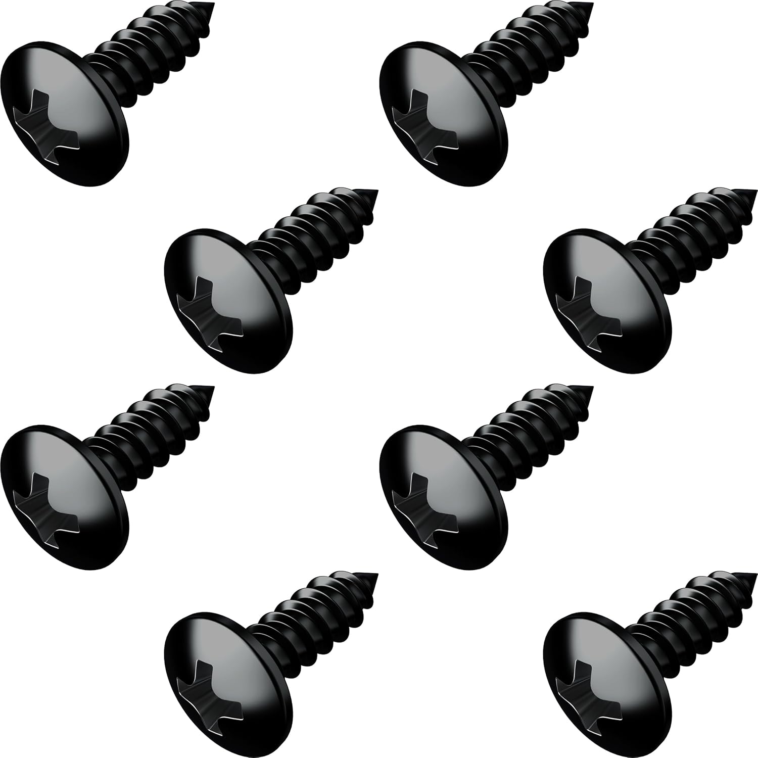 - 8 Screws for Total Plate Security: This set includes 8 heavy-duty black oxide stainless license plate screws, providing everything you need to securely mount both front and rear license plates. Compatible with most frames and holders of most vehicles, our rust proof license plate screws are the all-in- one solution for a rattle-free, reliable fit.