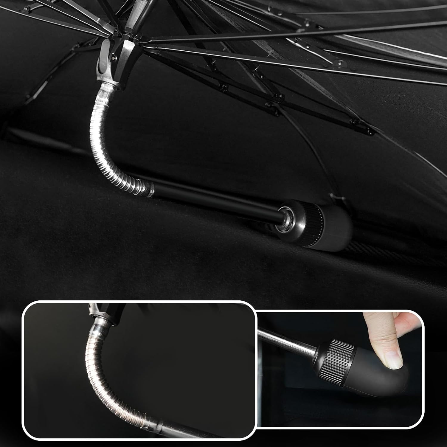 - DURABILITY: Built with 10 robust umbrella ribs, this front windshield umbrella sunshade is extremely sturdy. The bendable tubes can be flexed 360°, and the silicone tips protect your car's interior from scratches and damage, ensuring long-lasting use and peace of mind.