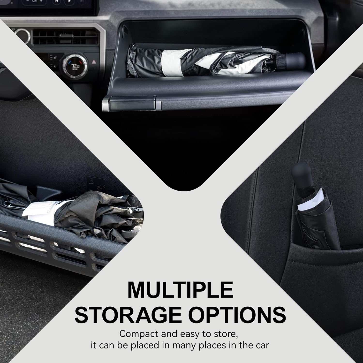 - PORTABLE: Unlike traditional double-loop sunshades, Raspillere umbrella style sunshade folds down to an incredibly small size. It can easily fit into small in-car storage compartments or even your bag, making it convenient to carry and store, saving valuable space for 2025 4runner accessories.