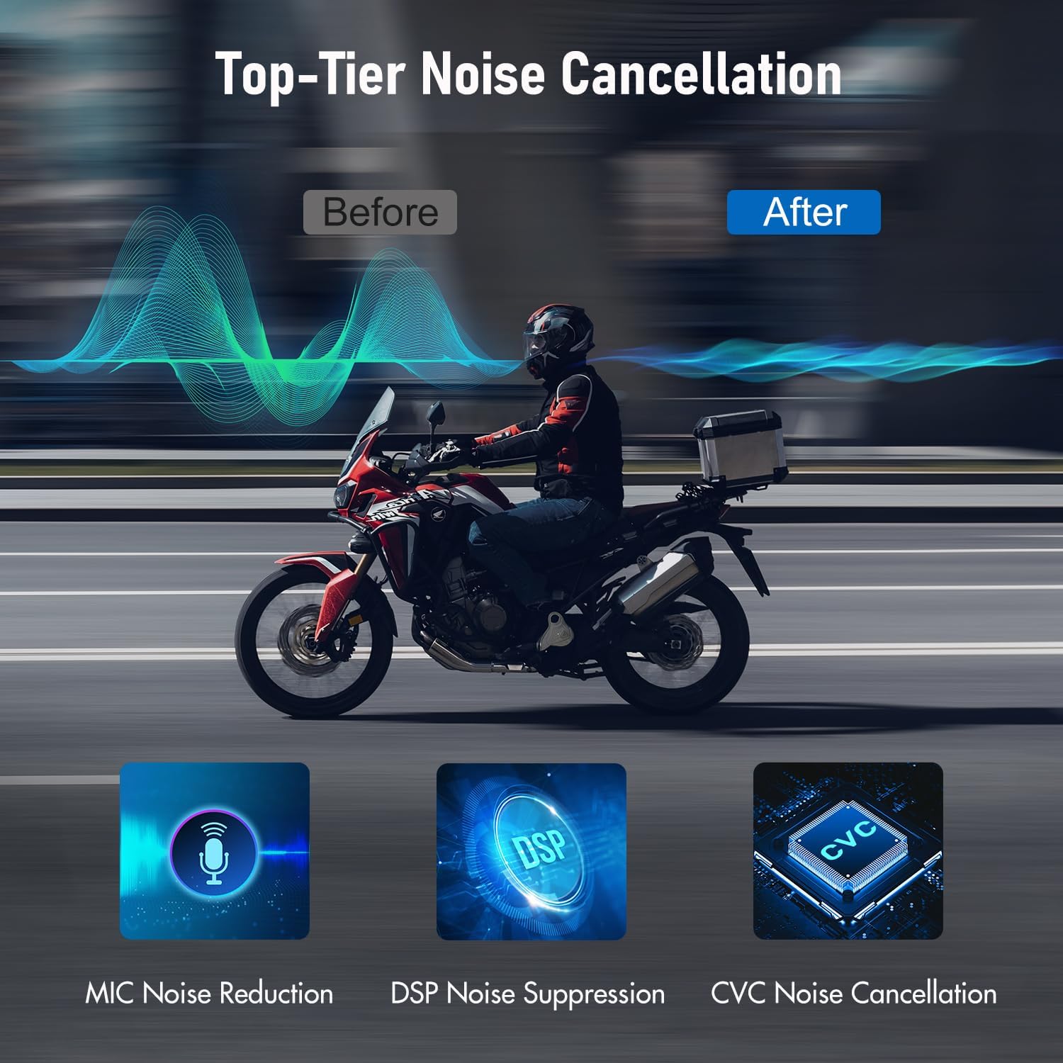 - 【Powerful Noise Cancellation & AptX Audio Technology】 With advanced DSP and CVC noise reduction technology and AptX high audio coding technology of Bluetooth 5.1, which provide powerful noise cancellation, Hi-Fi stereo sound quality and low Latency for the audio from TK-X4SC Bluetooth headset, built-in ∮40mm speakers deliver clear and crisp sound quality even when riding at high speeds.