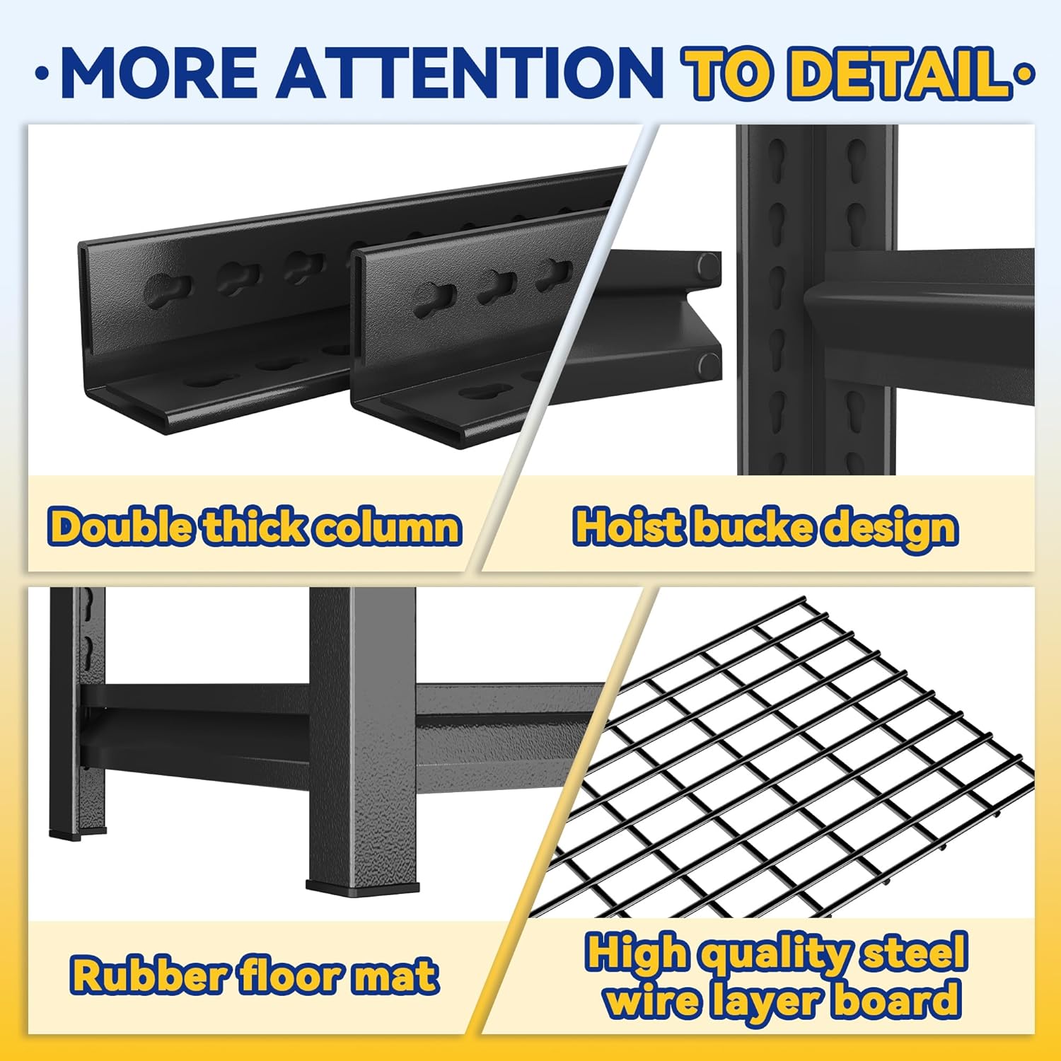 - 【Versatile Applications and Customer Support】 This shelving unit is perfect for various settings, including garages, kitchens, warehouses, and more. Its durable, powder-coated finish is scratch-resistant and easy to clean, ensuring long-term use. Additionally, we offer dedicated customer support, prioritizing your satisfaction and ensuring you have a reliable storage solution