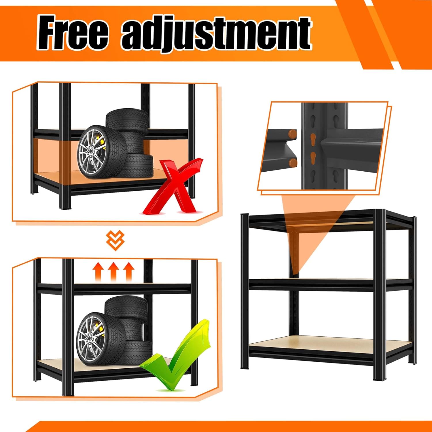 - 【Quick and Easy Assembly】Featuring an innovative buckle connection design, the assembly of this wooden shelving unit is incredibly simple and requires no tools. Just follow the easy-to-understand instructions to complete the setup in no time. Enjoy a tidy storage space quickly and effortlessly, maximizing the functionality of your garage with these versatile shelves