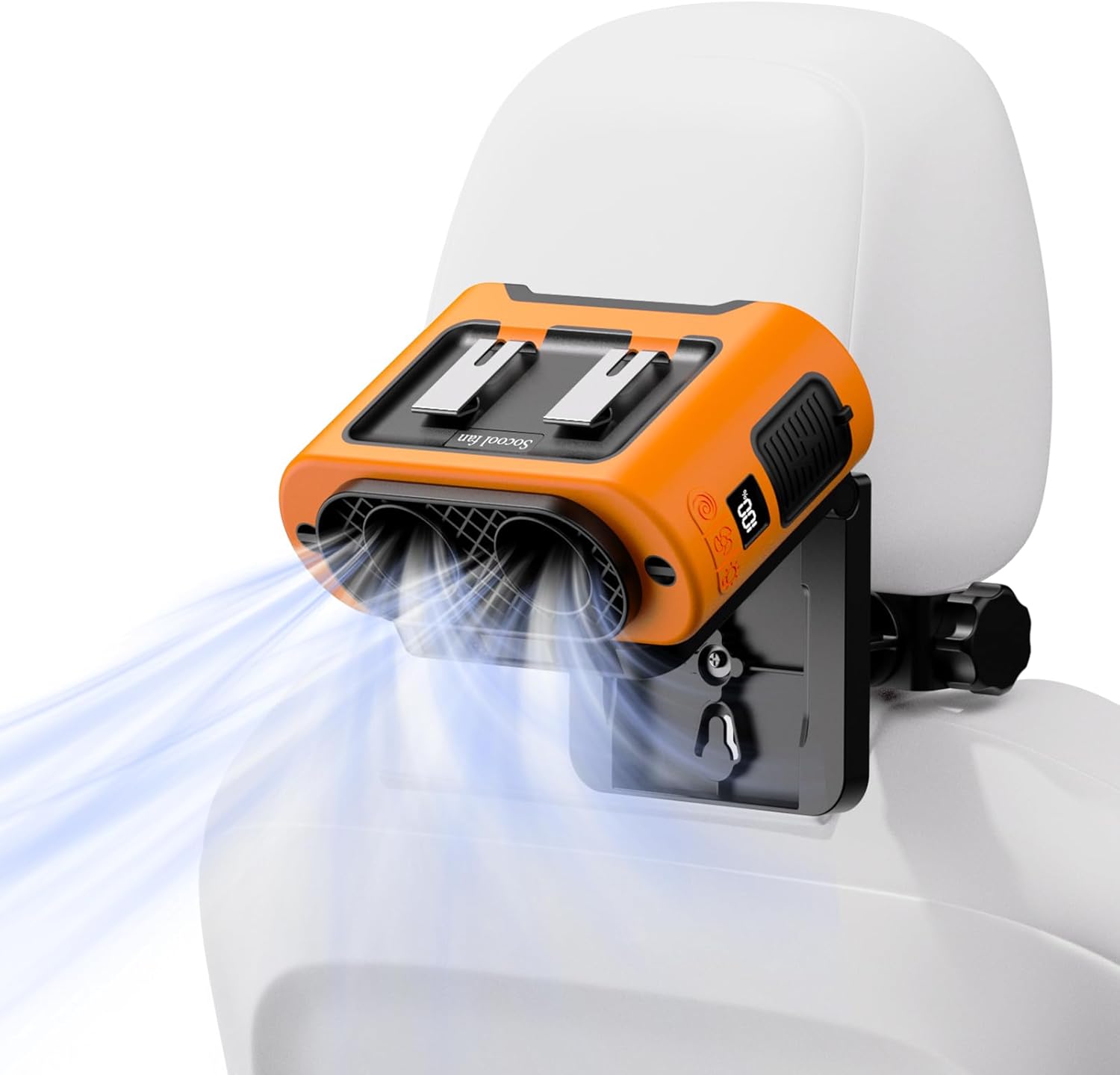 Socool Portable Car Fan - 14500mAh Rechargeable Battery Opearated, Clip on Car Seat Headrest 360 Rotatable, 5-Speed Backseat Fans for Baby Rear Facing Cooling with Dual Air Outlets for SUV RV Truck