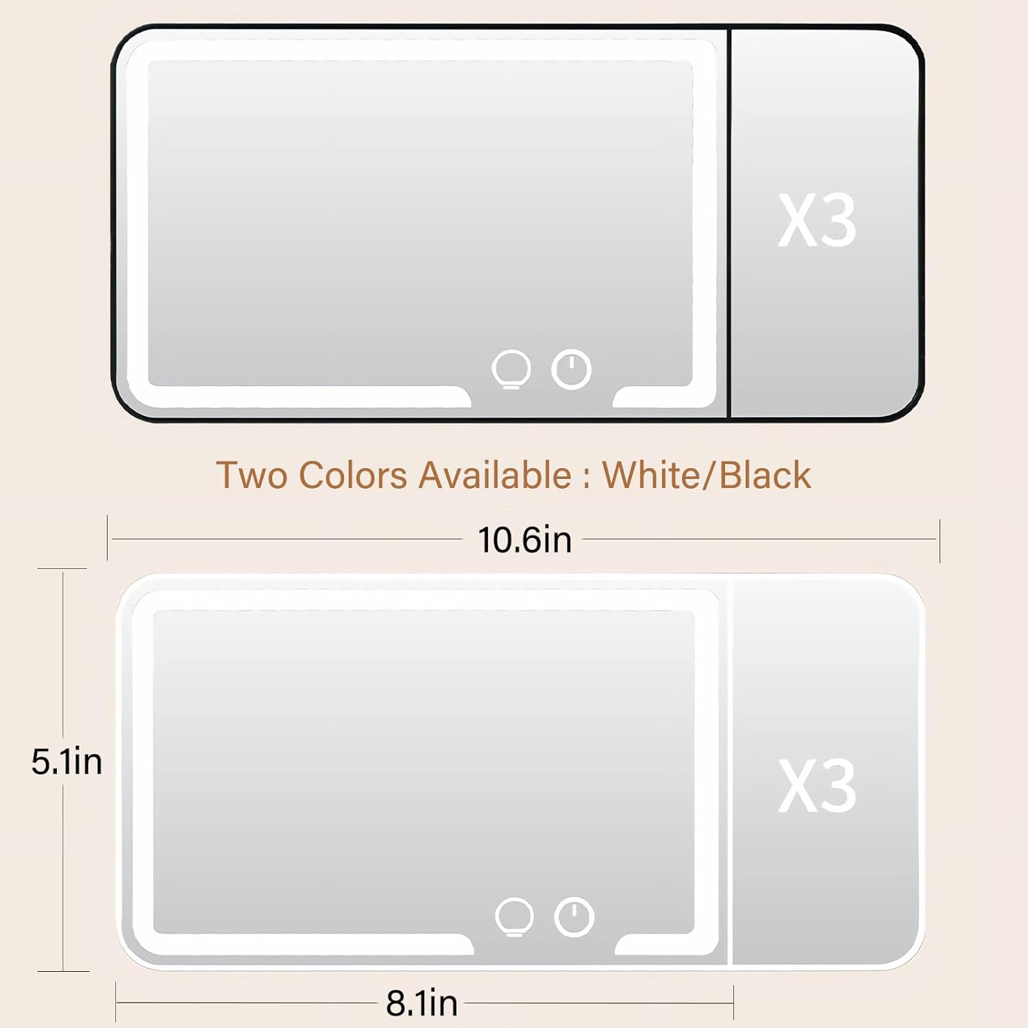- 【DIMMABLE BICOLOR LED LIGHTS】The car makeup mirror has 60 led lights, which is 40% brighter and 60% less energy than normal bulbs. Long press for dimming according to what you need. 2500k-6500k color temperature meets the needs of different makeup occasions/night lighting