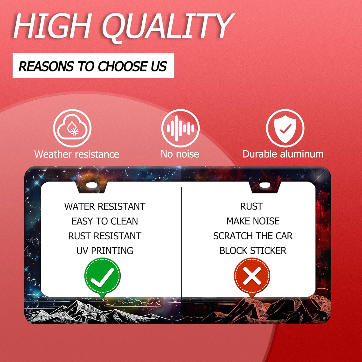 Starry Sky Mountains License Plate Frame Beautiful Galaxy License Plate Holder Funny Stainless Steel Accessories Cars Decor with 2 Holes and Screws Fits Standard Us Ca Vehicles 12.2 X 6 Inch