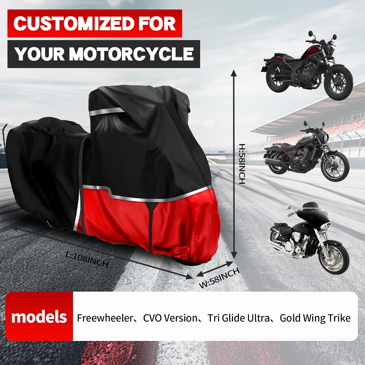 - Universal Fit: Compatible with cruiser motorcycles. This motorcycle cover replace for Honda Rebel 300 500 1100 and Shadow 750/ Vtx 1300 /Fury. Please measure your motorcycle and ensure the cover is at least 4 inches long for optimal coverage