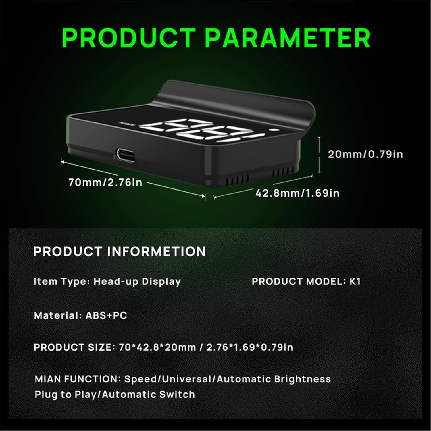 - Clearer Display: Our HUD displays speed in MPH by default, with a maximum display speed of 115 mph, and utilizes a large font design and metal shading technology that effectively eliminates unwanted reflections and ensures a clearer display so that even older drivers with weak eyesight or those wearing sunglasses can see the speed very clearly.