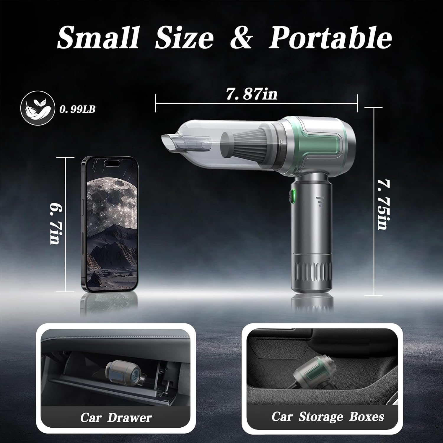 - Versatile Design: This small vacuum is equipped with four functions: suction, blowing, inflation, and vacuuming. With strong suction power, the handheld vacuum cordless can thoroughly clean every inch of space. The unique blowing design enables portable car vacuum to handle different cleaning challenges. The intelligent inflation function can inflate items such as swimming rings. The highly efficient air extraction nozzle can easily solve the storage problem. The powerful collection function of the vacuum cleaner makes the dust in all places have nowhere to hide, and makes all your items look brand new.