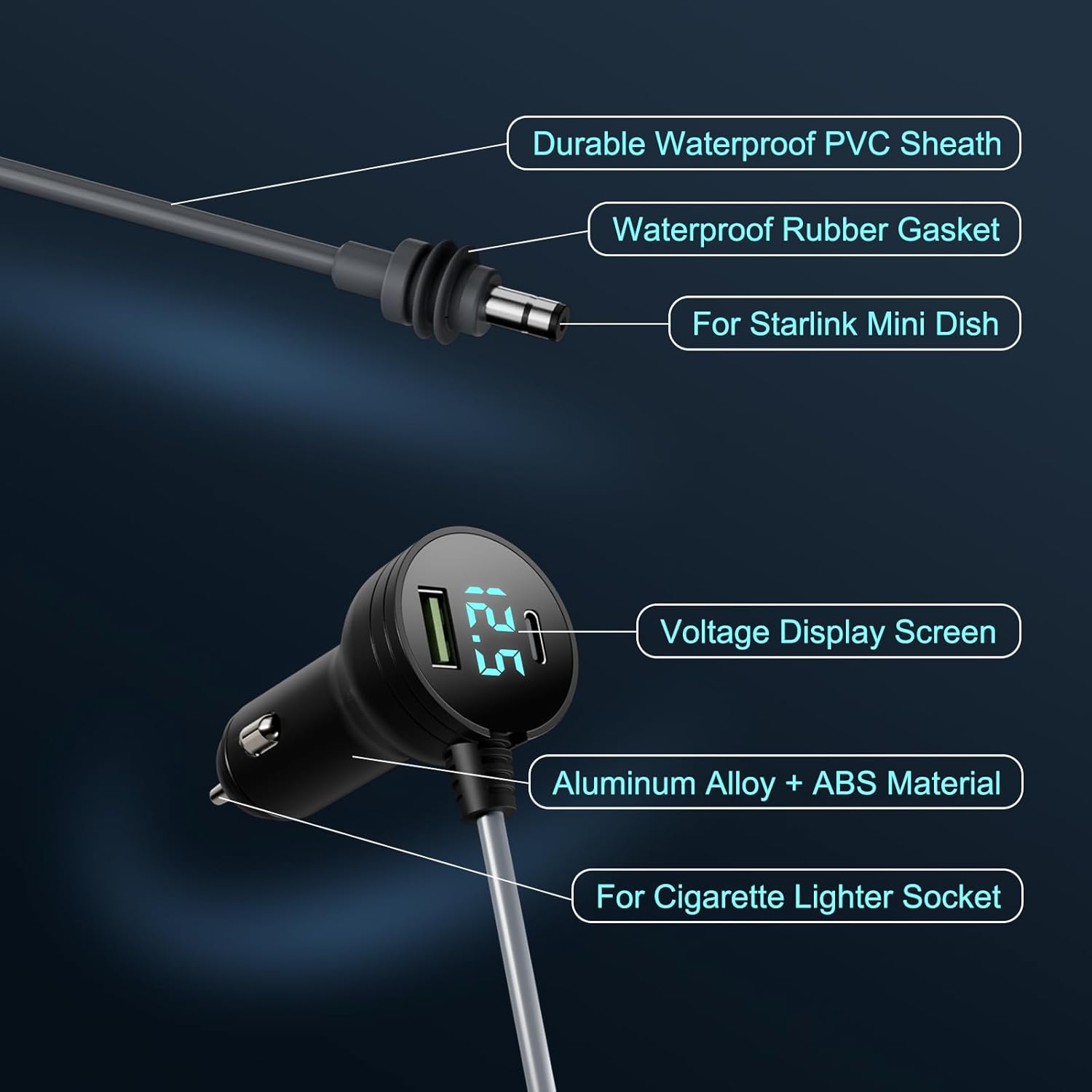- [Instant Power, Anywhere] This starlink mini cable seamlessly adapts to Starlink Mini, plugs directly into the cigarette lighter port, and supplies power to Starlink devices in seconds without complicated installation or additional tools. Instead of the traditional household power supply, to solve the problem of outdoor power supply without a fixed power supply, say goodbye to the power supply adaptation trouble.